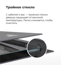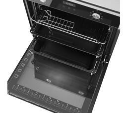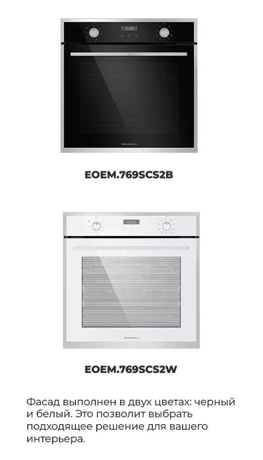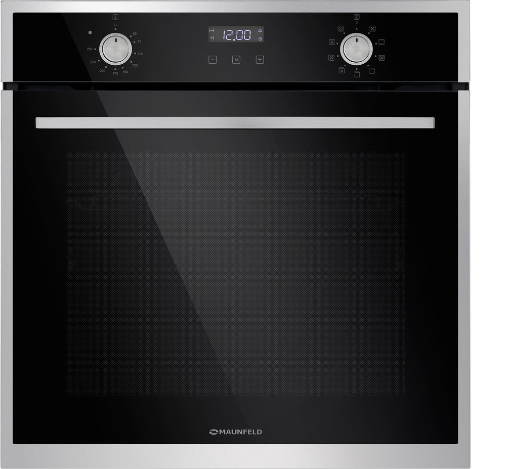 Элегантный электрический встраиваемый духовой шкаф из новой серии MAUNFELD MASTER - это сочетание высокого качества сборки, эксклюзивного дизайна и расширенного функционала. Объем 76 л при стандартной ширине 60 см позволяет готовить одновременно несколько блюд, разместив решетку или противень на одном из 6-ти уровней боковых направляющих. Два уровня оснащены удобными телескопическими направляющими. Внутреннее покрытие камеры выполнено из специальной легкоочищающейся эмали черного цвета. Дверца с доводчиком состоит из 3-х стекол, что создает холодный фронт и делает процесс приготовления безопасным, так как внешнее стекло практически не нагревается. Тангенциальное охлаждение минимизирует передачу тепла от духовки предметам, находящимся рядом, например мебели. Тонировка внутреннего стекла дверцы создает визуальный эффект непрозрачности фасада: при выключенном освещении не видно посуду, находящуюся внутри духовой камеры, а при включенном освещении можно в деталях рассмотреть весь процесс готовки. Фронтальная панель духовки выполнена из высококачественного жаропрочного стекла черного цвета, окрашенного по всему объему, что является отличительной чертой бытового прибора премиум-класса. По периметру фасада сделана окантовка из матированного алюминия. Комбинированное управление реализовано в виде сенсорного дисплея и поворотных цельнометаллических ручек PUSH PULL, которые легким нажатием убираются внутрь корпуса. Можно выбрать режим работы, температуру (50°-250°C), установить таймер и блокировку от детей. В данной модели есть 10 режимов: традиционный нагрев, большой гриль, конвекционный нагрев, малый гриль, разморозка, конвекция с нижним нагревом, горячий воздух, пицца, объемный турбогриль, освещение. В комплекте: сетевой шнур с вилкой, два противня и решетка.