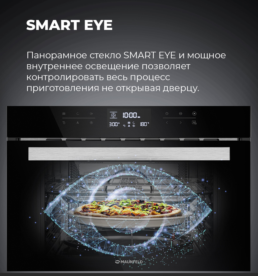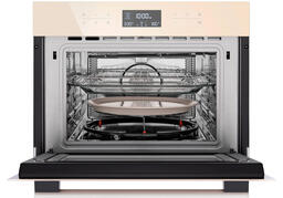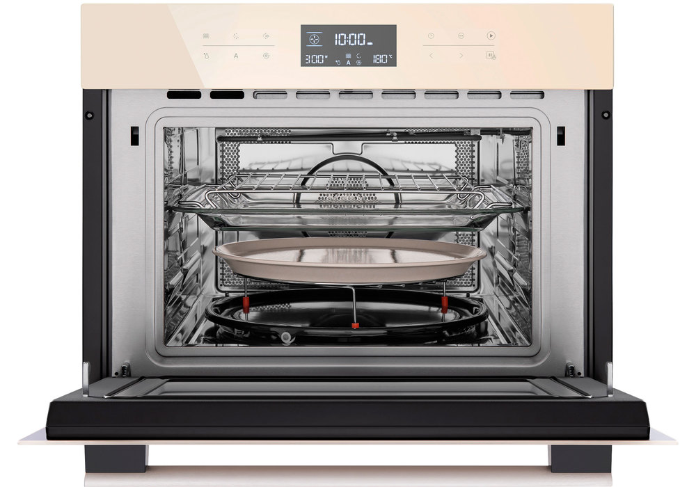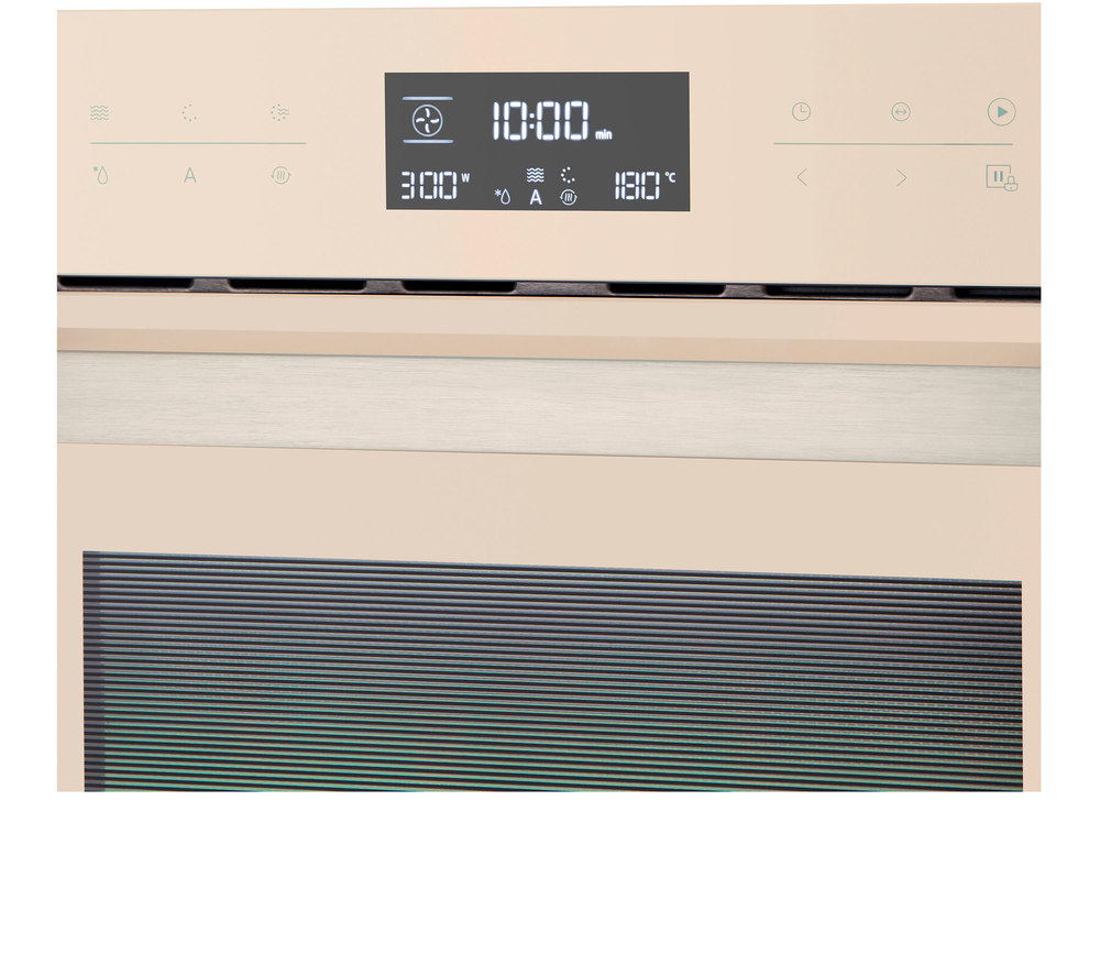 Стильный электрический встраиваемый духовой шкаф с функцией СВЧ объемом 44 л и шириной 60 см. Внутренняя камера выполнена из нержавеющей стали. Дверца духового шкафа состоит из 2-х жаропрочных стекол, что создает холодный фронт и делает процесс приготовления безопасным, исключая возможность ожога при касании. Панорамное стекло SMART EYE и мощное внутреннее освещение позволяет контролировать весь процесс приготовления не открывая дверцу. Фронтальная панель сделана из высококачественного жаропрочного стекла бежевого цвета. Цельнометаллическая ручка дверцы из матированной нержавеющей стали лаконично поддерживает общий стиль и не нагревается во время готовки. Сенсорное управление с дисплеем COLD WHITE позволит выбрать режим работы, температуру (50°-230°C), установить таймер и блокировку от детей. В данной модели предусмотрены следующие режимы работы: горячий воздух, горячий воздух и нижний нагрев, гриль (имеет 3 режима мощности), конвекция, гриль+конвекция, горячий воздух + нижний гриль, микроволны, микроволны комби; автоматическая разморозка; предварительный разогрев, 13-программное Авто-меню. В комплекте: вращающееся кольцо, круглая подставка для гриля, квадратная решетка для гриля, универсальный противень, круглый керамический поддон, круглый эмалированный поддон.