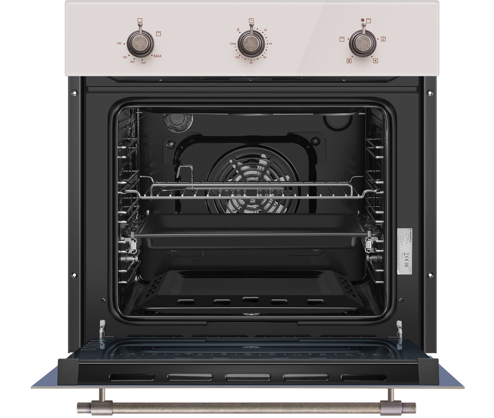Стильный газовый встраиваемый духовой шкаф высокого качества сборки, актуального дизайна и расширенного функционала.Модель оснащена внутренним энергосберегающим стеклом, которое легко выдвигается и чистится, съёмная дверца; таймер механический с обратным отсчётом. Для управления температурой и режимами работы применяются специальные поворотные переключатели бронзового цвета. Этот духовой шкаф - отличный выбор для пользователей, которые хотят получить стильное и надежное устройство, обладающее большим количеством различных функций. Объем 60 л при стандартной ширине духового шкафа 60 см позволяет готовить одновременно несколько блюд, разместив решетку или противень на одном из 5-ти уровней боковых направляющих. Один уровень оснащен удобными телескопическими направляющими. Внутреннее покрытие камеры выполнено из специальной легкоочищающейся эмали черного цвета. Фронтальная панель дверцы, лицевая часть блока управления и фасад ручки дверцы сделаны из высококачественного жаропрочного стекла, окрашенного по всему объему, что является отличительной чертой бытового прибора премиум-класса. Механическое управление осуществляется цельнометаллическими поворотными ручками. Можно выставить температуру готовки, установить таймер (0-55 мин) и выбрать один из 5 режимов работы: нижний газовый нагрев с вентилятором (конвекция), традиционная готовка, вентилятор, освещение. Данная модель работает как при открытом, так и при закрытом гриле. Дверца состоит из 3-х жаростойких стекол немецкого производителя SCHOTT. Благодаря подобной конструкции образовывается холодный фронт, что делает процесс приготовления безопасным, исключая возможность ожога при касании. Надежность духового шкафа обеспечивается полным газ-контролем – система, которая перекрывает подачу газа, если потух огонь. Автоматический электроподжиг является дополнительным преимуществом этой модели. В комплекте: решётка, противень и прихват.