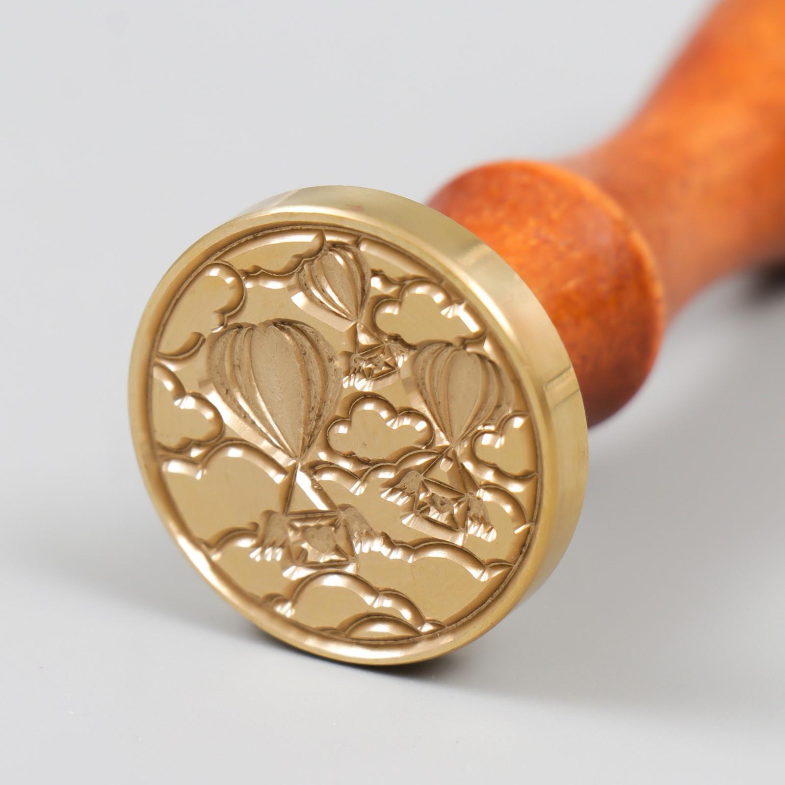 Печать для сургуча с деревянной ручкой "Воздушные шары с любовными письмами" 3х3 см