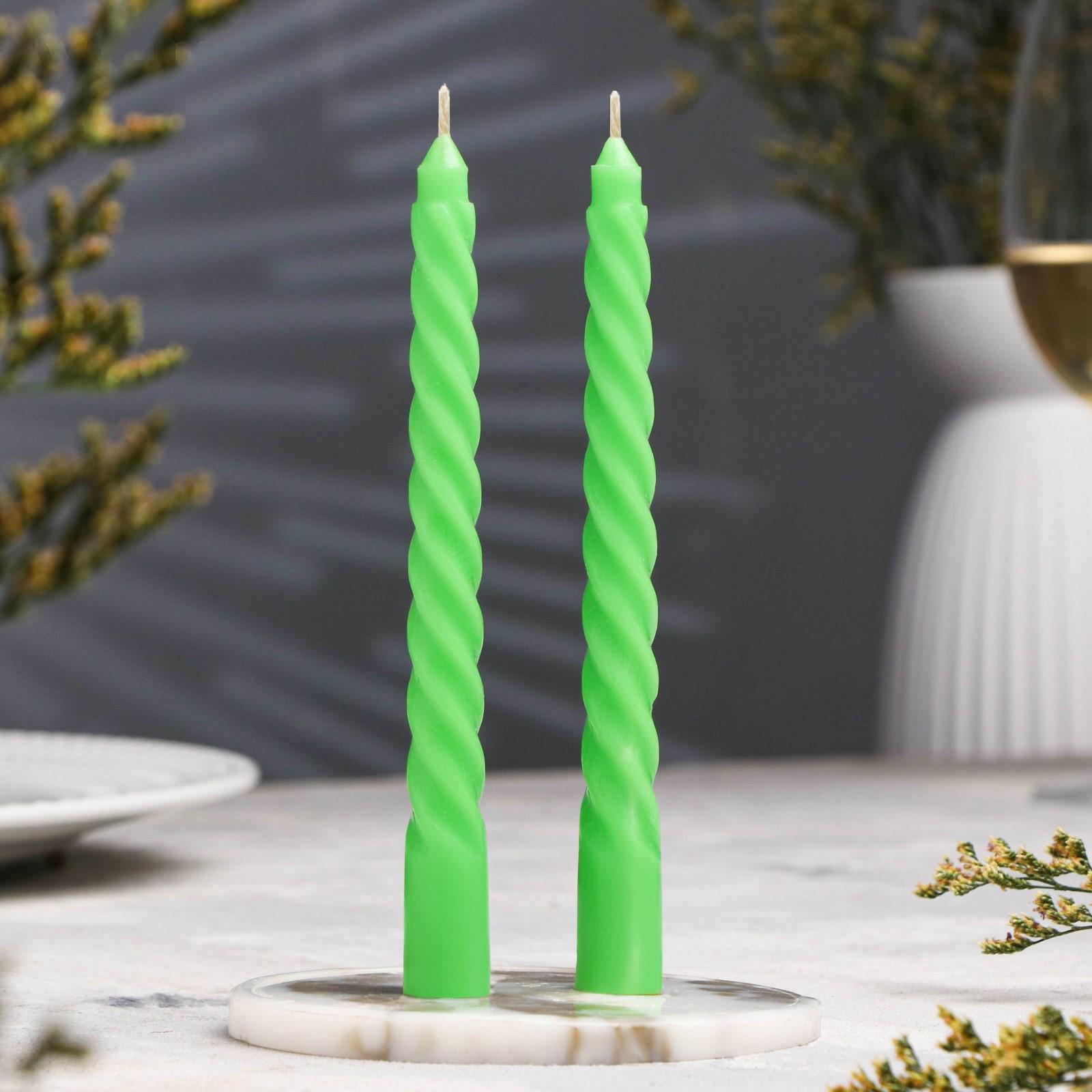 Набор свечей витых, 1,5х15 см, 2 штуки, зеленый