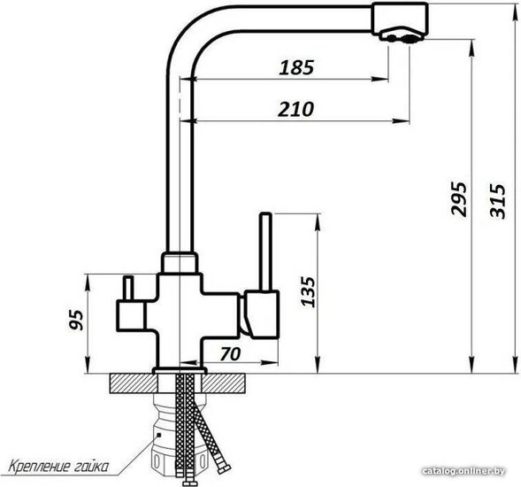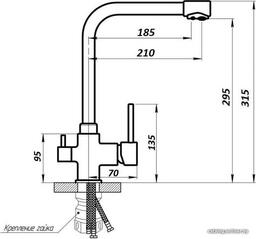 • Длина (вылет) излива 185 — 210 мм