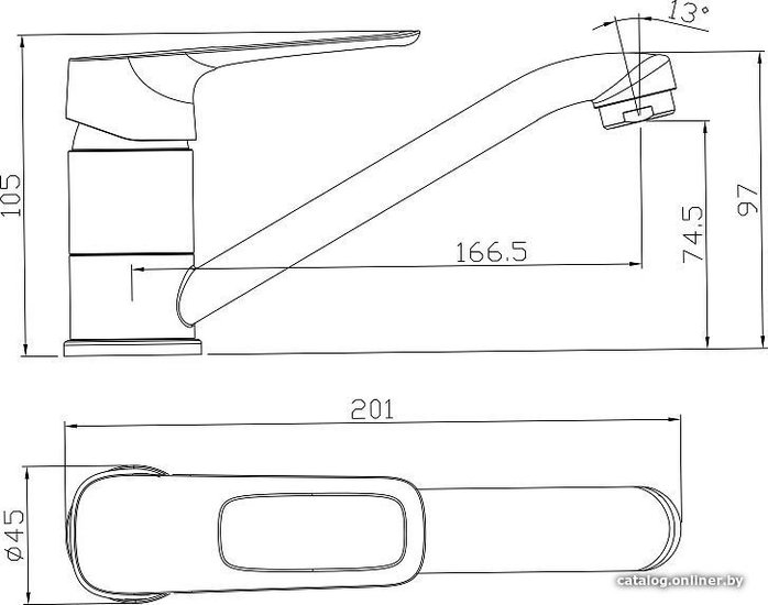 - Длина (вылет) излива 166.5 мм