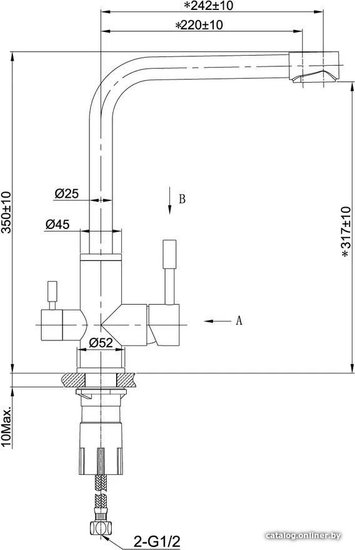 - Высота излива 317 мм