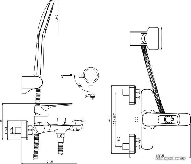 - Длина (вылет) излива 170.5 мм