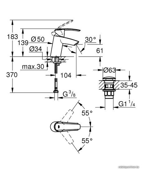 - Длина (вылет) излива 104 мм