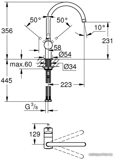 - Высота излива 231 мм