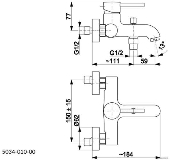 - Длина (вылет) излива 59 мм