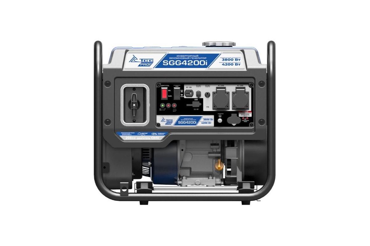 Бензогенератор инверторный вырабатывает электричество с высокой точностью частоты и напряжения. Предназначен для подключения к нему потребителей общей максимальной мощностью до 4,2 кВт. Позволяет напрямую подключать к генератору как обычных потребителей, так и точное электронное оборудование, например, ноутбуки, LCD-телевизоры или смартфон. Благодаря использованию инверторного преобразователя, на выходе получается стабильный ток, без каких-либо скачков. Генератор способен регулировать работу двигателя в зависимости от нагрузки: к примеру, если нагрузка составляет половину от выходной мощности, то и мощность двигателя снижается вдвое; это дает значительную экономию топлива. Инверторные модели получаются более легкими и компактными, чем традиционные генераторы. Благодаря двигателю, специально разработанному под инверторный генератор и особенной конструкции корпуса, удалось значительно понизить уровень шума. Режим ECO экономит топливо и увеличивает ресурс двигателя. Выход 12 вольт позволяет подзарядить автомобильный аккумулятор в экстренном случае. Инверторный генератор считается оптимальным выбором для нагрузки, чувствительной к качеству тока — такой, как аудиотехника или телевизор.