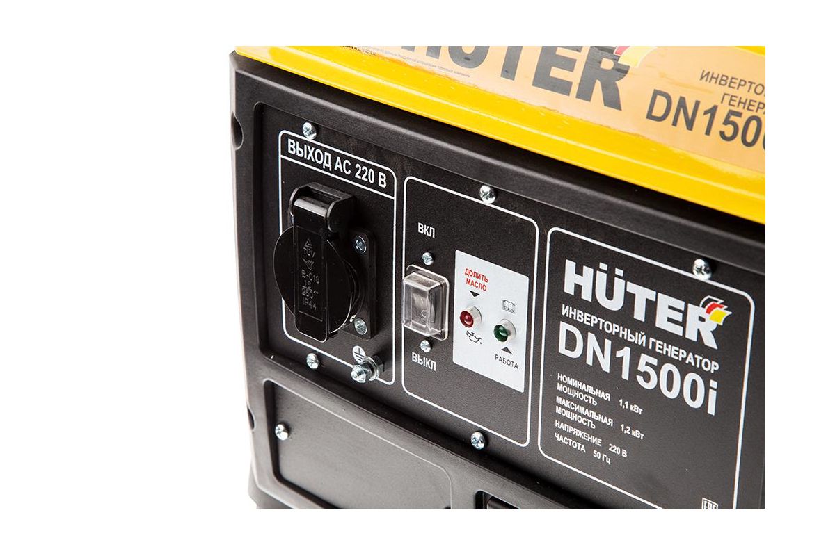 Инверторный бензиновый генератор HUTER DN1500i 1.3 кВа/1.1 кВт, 53.5 см3, бак 4.2л, время работы: 6