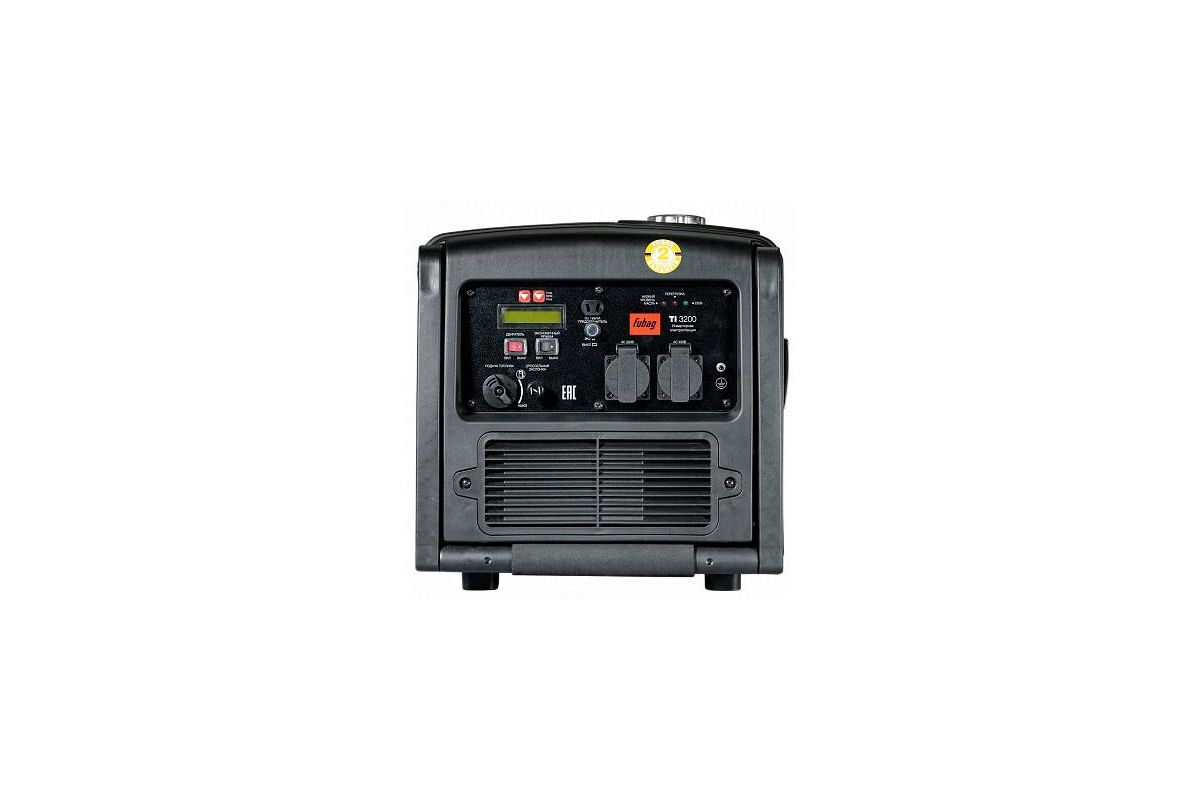 Fubag TI 3200 - надежная инверторная электростанция хорошо подойдет для организации электроснабжения оборудования на стройке, торговых и социальных объектах, а так же для использования в качестве резервного источника питания электроприборов на даче. Мультифункциональный цифровой дисплей позволяет контролировать основные выходные параметры генератора. Вместительный бак объемом 7,8 л позволяет станции работать до 4,5 часов без дозаправки при 75% нагрузки.