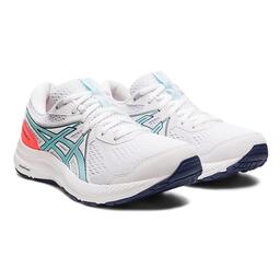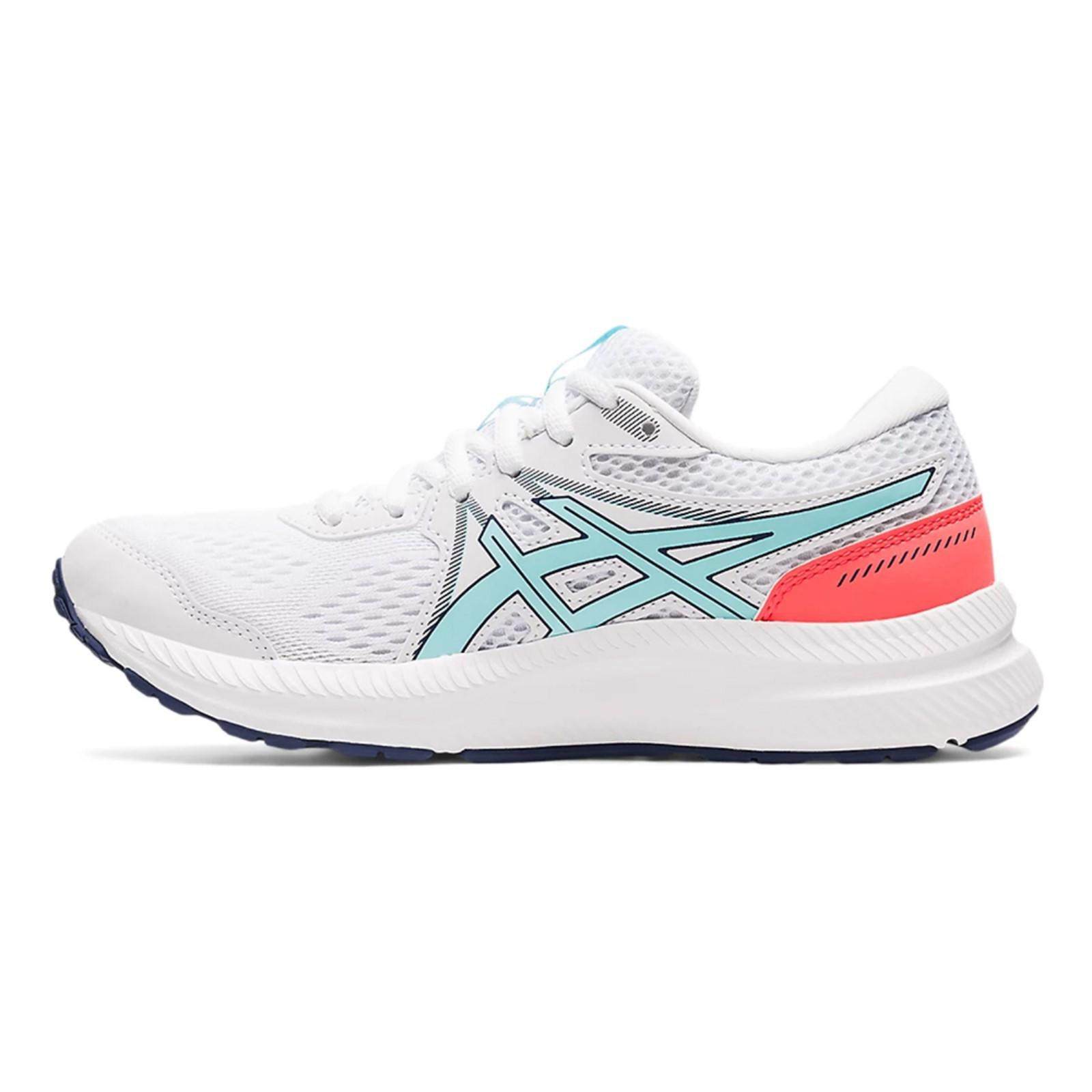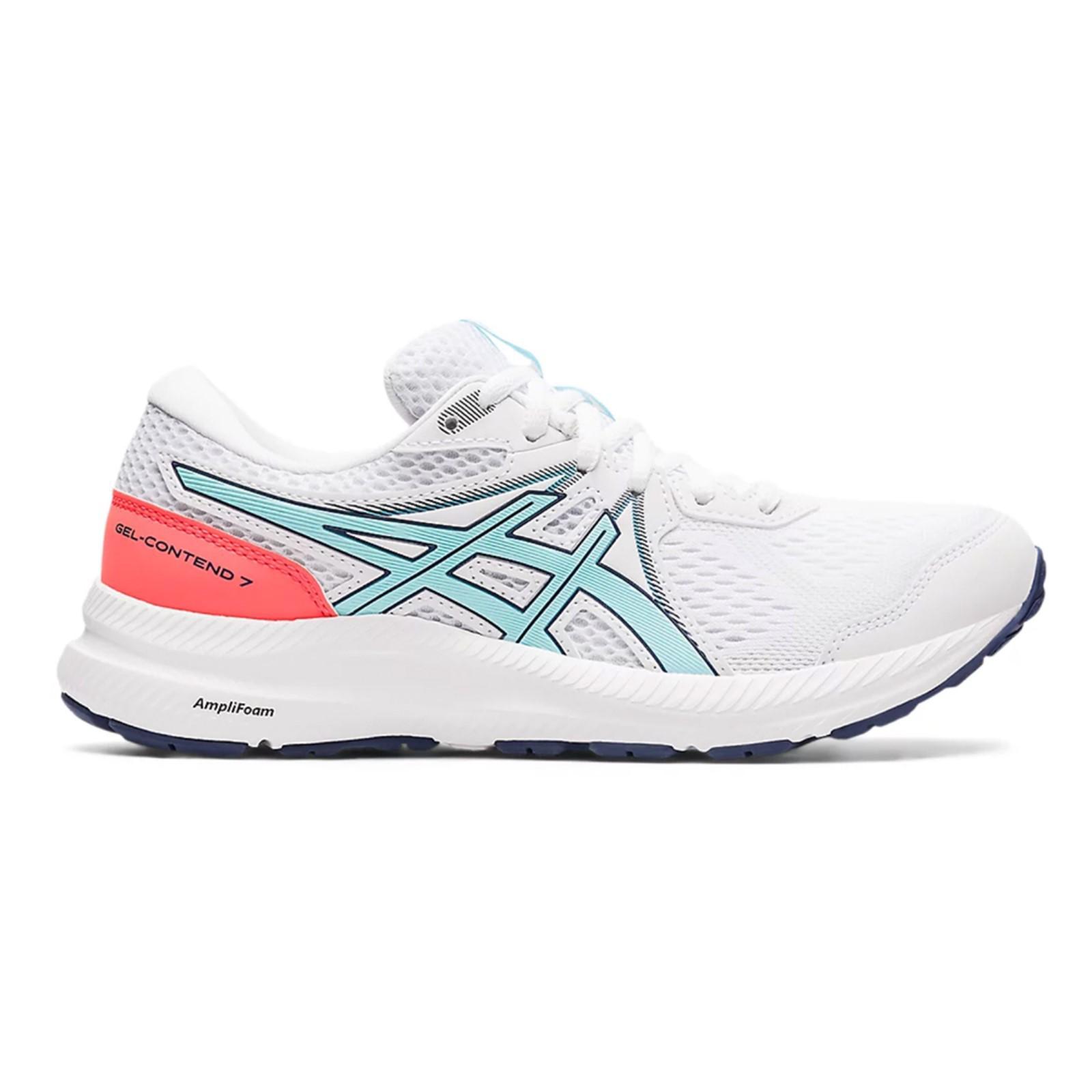 В версии GEL-CONTEND 7 верх состоит из лёгкой и функциональной сетки с увеличенным перфорированием — для максимальной вентиляции и комфорта во время тренировки. Участки, которые переносят максимальные нагрузки, усилены дополнительными накладками из синтетической кожи, что увеличивает прочность и долговечность кроссовок. Внутренний задник изготовлен из уретанового термопластика, удерживает стопу на месте.