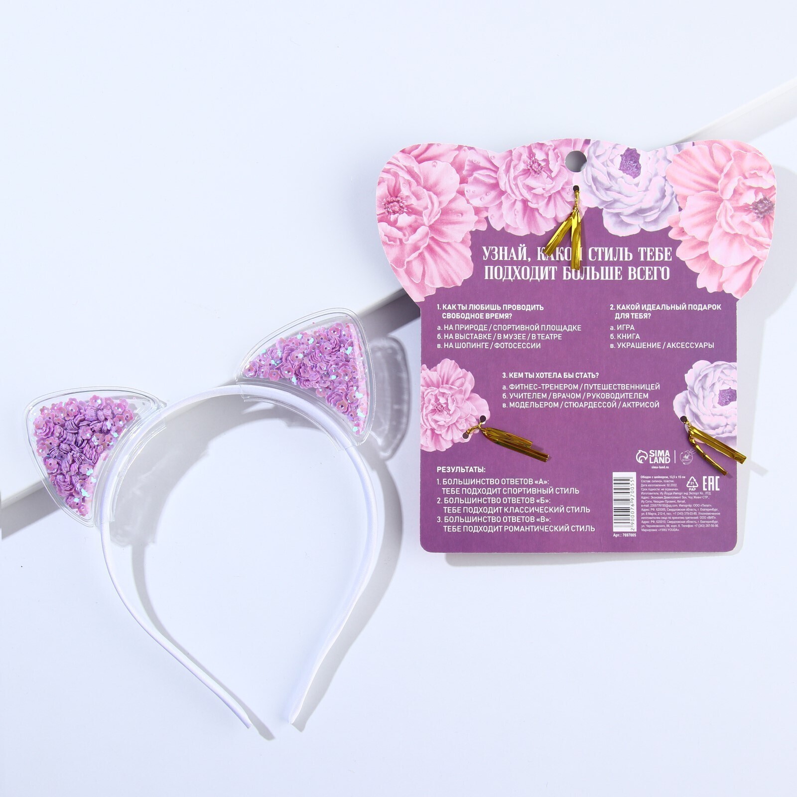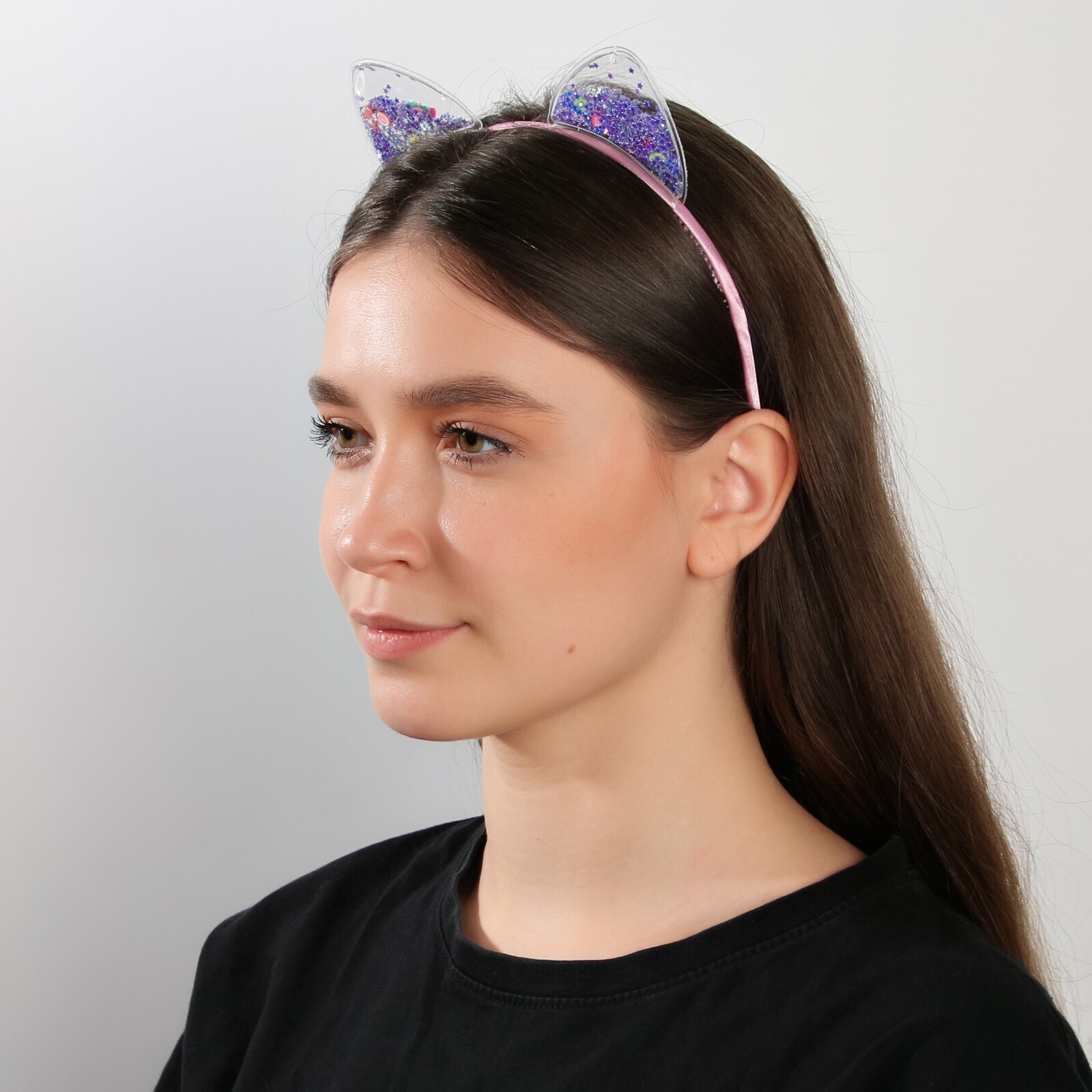 Ободок с ушками кошки для волос детский дополнит образ на день рождение, фотосессию, детский праздник, фестиваль и выступление, а также станет отличным подарком на любой праздник. Ободок ушки кошки на металлическом ободке, декорированный атласной лентой, имеет универсальный размер и подходит для прически любой длины, его смело можно использовать для маленьких девочек.Все элементы надежно и аккуратно закреплены. Детский обруч прекрасно фиксируется на волосах, не сдавливает голову, не спадает, его комфортно одевать и снимать Продуманный и оригинальный образ всегда притягивает взгляды и вызывает восхищение окружающих! Ушки выполнены из пластика, внутри разноцветный пойетки. Ушки регулируются.
