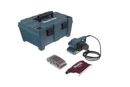Ленточная шлифмашина Makita 9910K предназначена для шлифования и выравнивания поверхностей заготовок из древесины, металла и других материалов. Имеется фиксатор кнопки пуска, что весьма удобно при продолжительной работе. Для поддержания чистоты на рабочем месте инструмент снабжен пылесборным мешком. Шлифовальная лента автоматически центрируется, что обеспечивает ей точный ход. Низкий уровень шума добавляет комфорта рабочему процессу. Вопрос хранения и транспортировки решается благодаря удобному кейсу в комплекте.