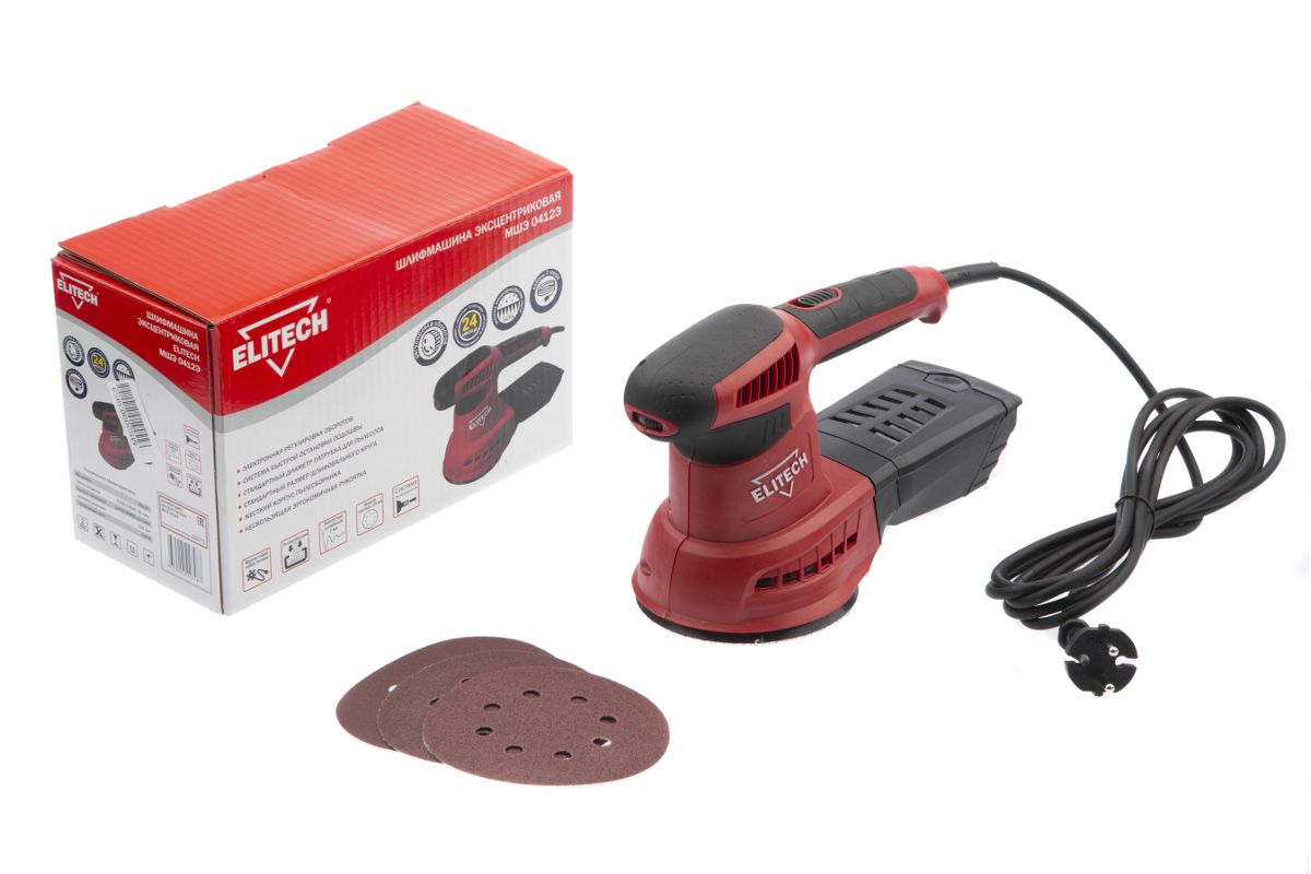 Шлифмашина вибр ELITECH МШЭ 0412Э 400Вт. ф125мм. 12000-26000об\м. ампл-2.0мм. 1.6кг. кор. п\сборник