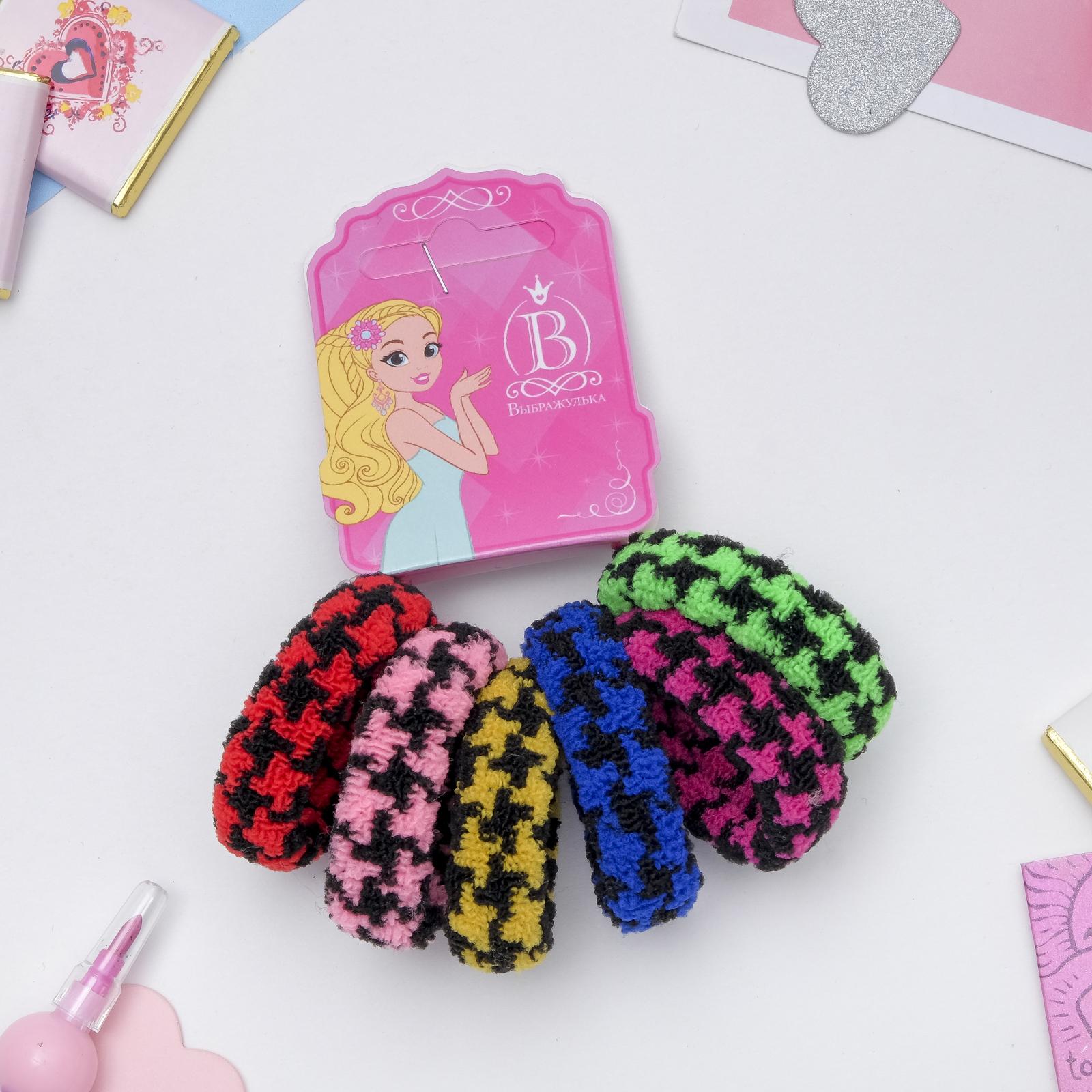 Резинка для волос "Махрушка" (набор 6 шт) гусиная лапка, 4 см, микс