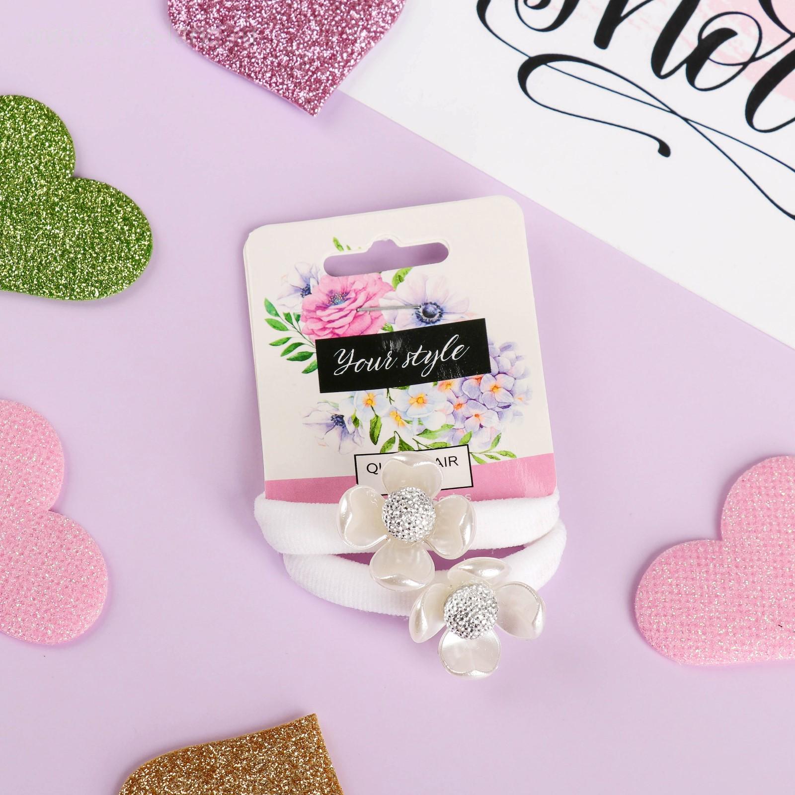 Резинка для волос "Белая купавка" (набор 2 шт) белый