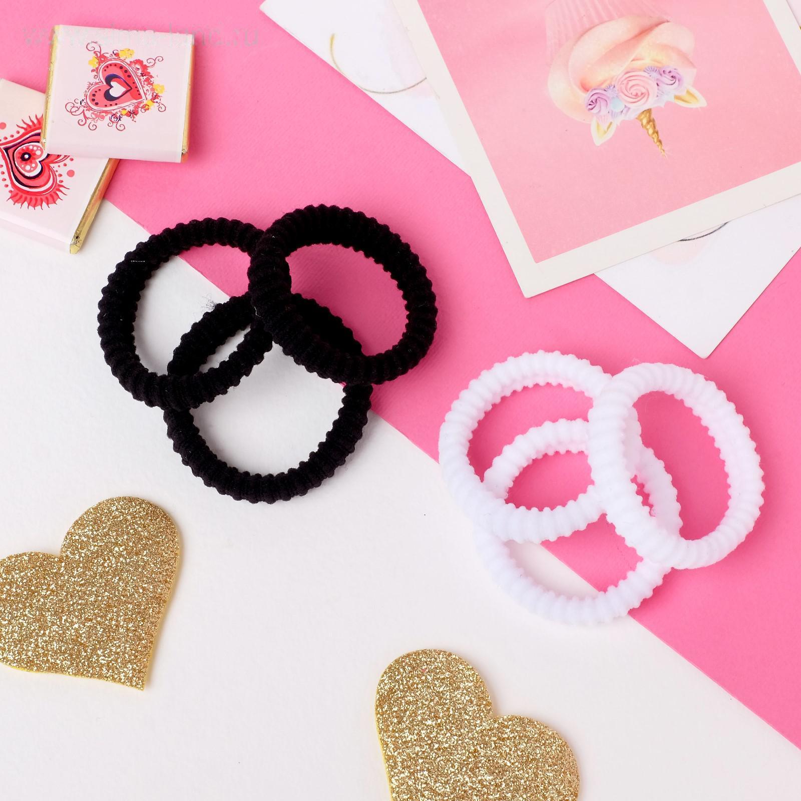 Резинка для волос "Махрушка простая" (набор 6 шт) гофре, чёрный белый