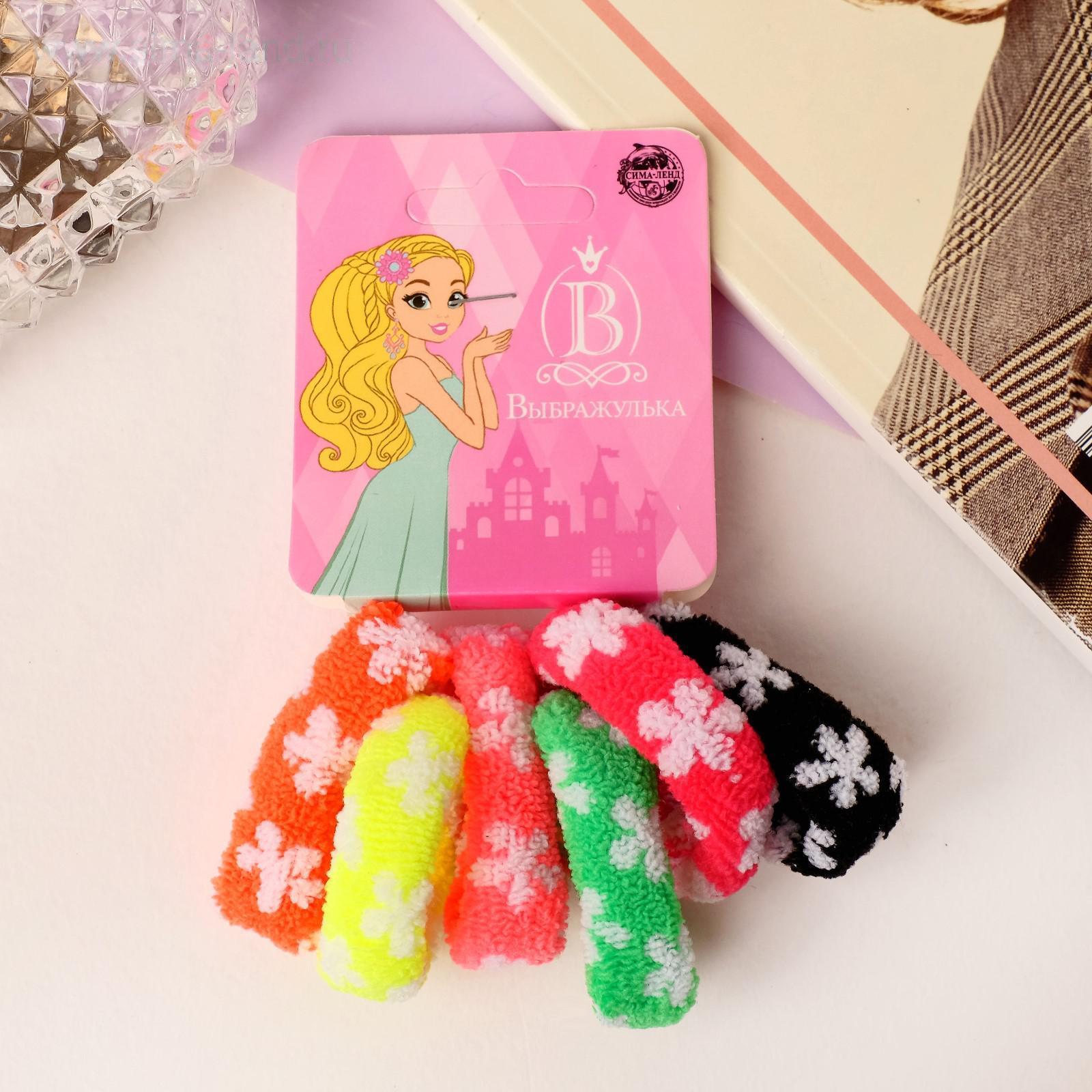 Резинка для волос "Махрушка" (набор 6 шт) цветики, 3 см, микс
