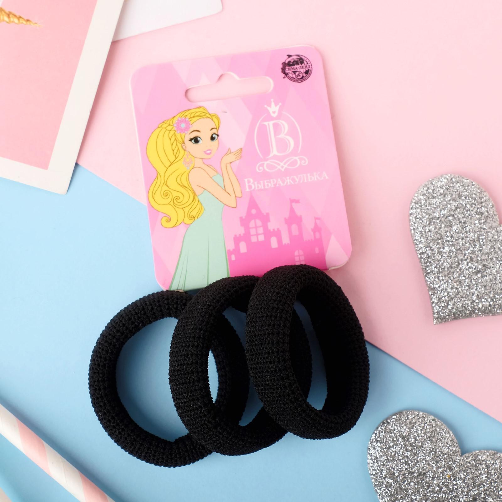 Резинка для волос "Спорт" (набор 3 шт) вязание, 4 см, чёрный