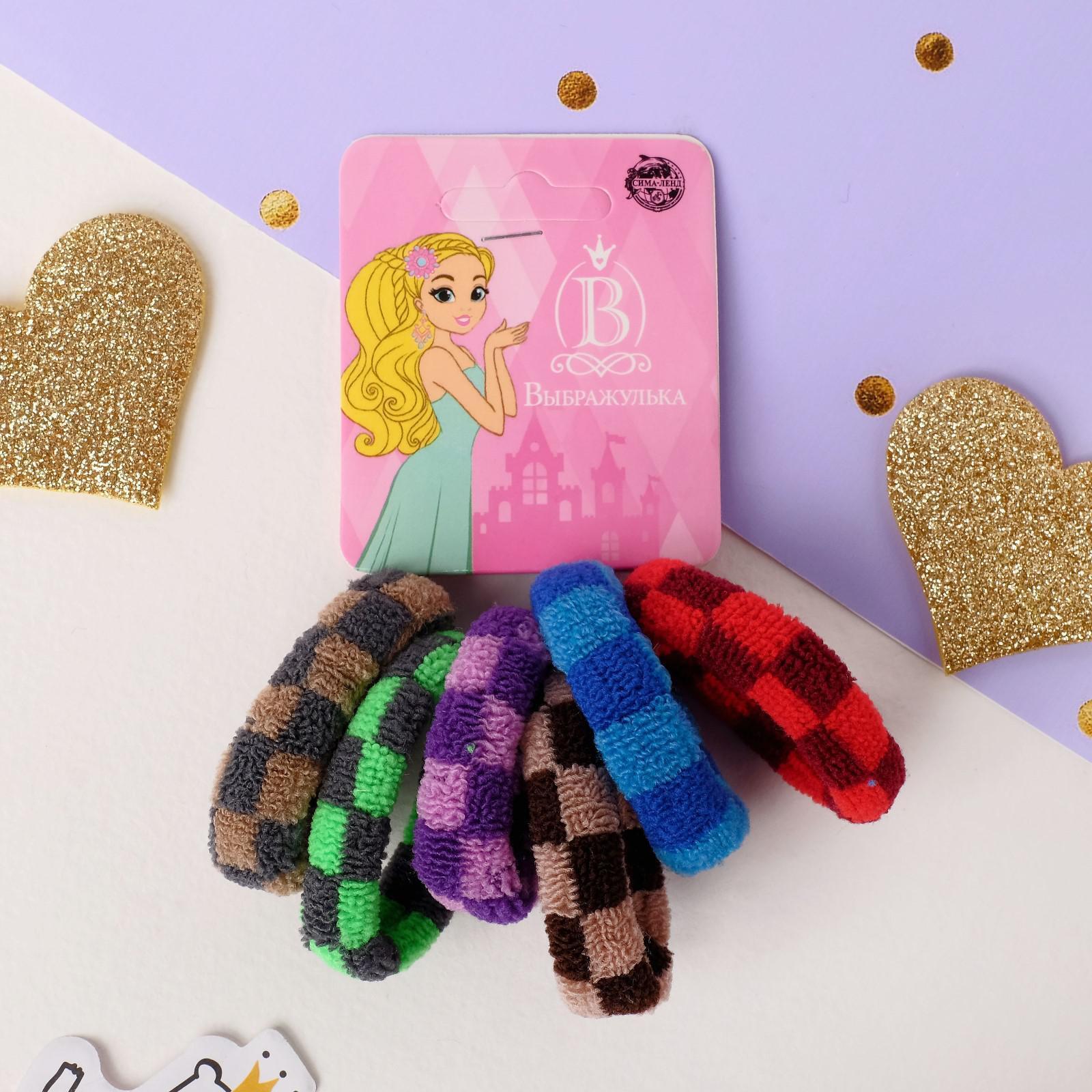 Резинка для волос "Махрушка нежная" (набор 6 шт) квадраты, микс