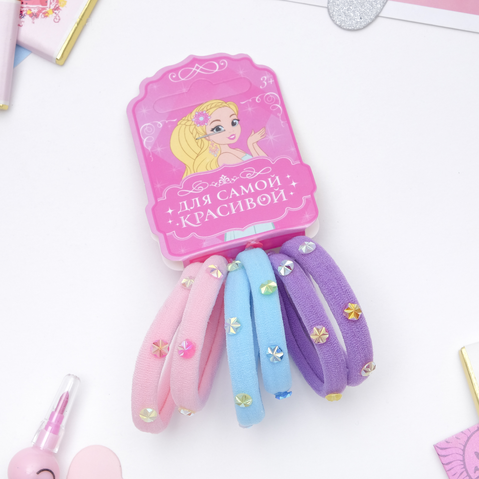Резинка для волос "Капельки" (набор 6 шт) 4 см, микс