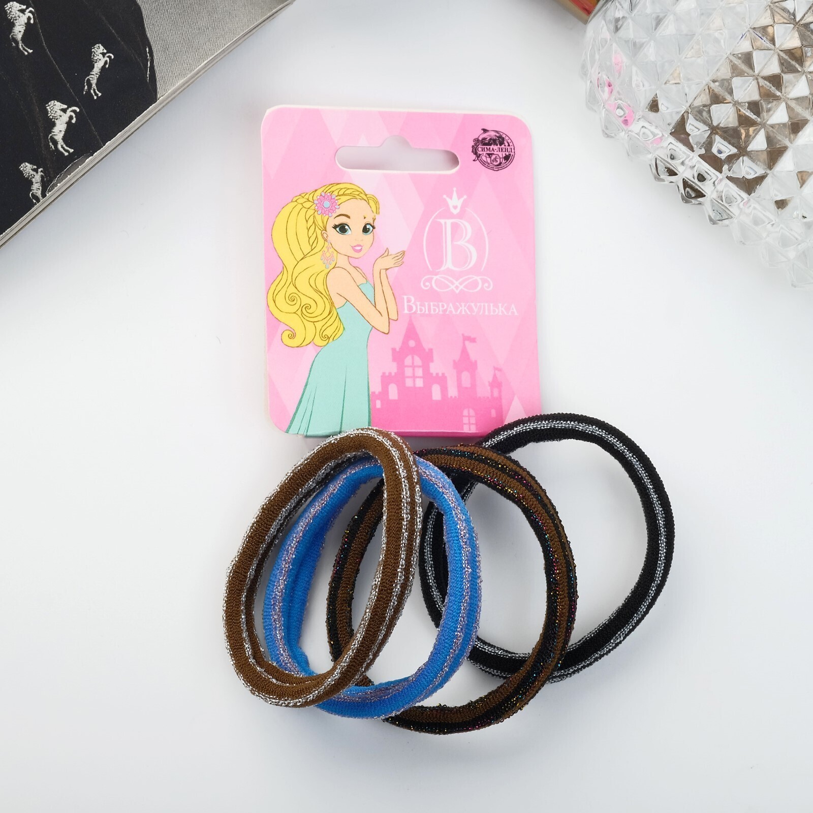 Резинка для волос "Спорт" (набор 4 шт) полоски блеск, 5 см, тёмный микс