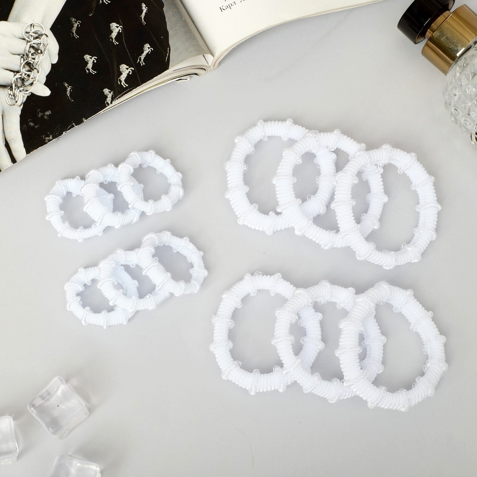 Резинка для волос "Махрушка" (набор 12 шт) 2,5 см и 4,5 см, белый