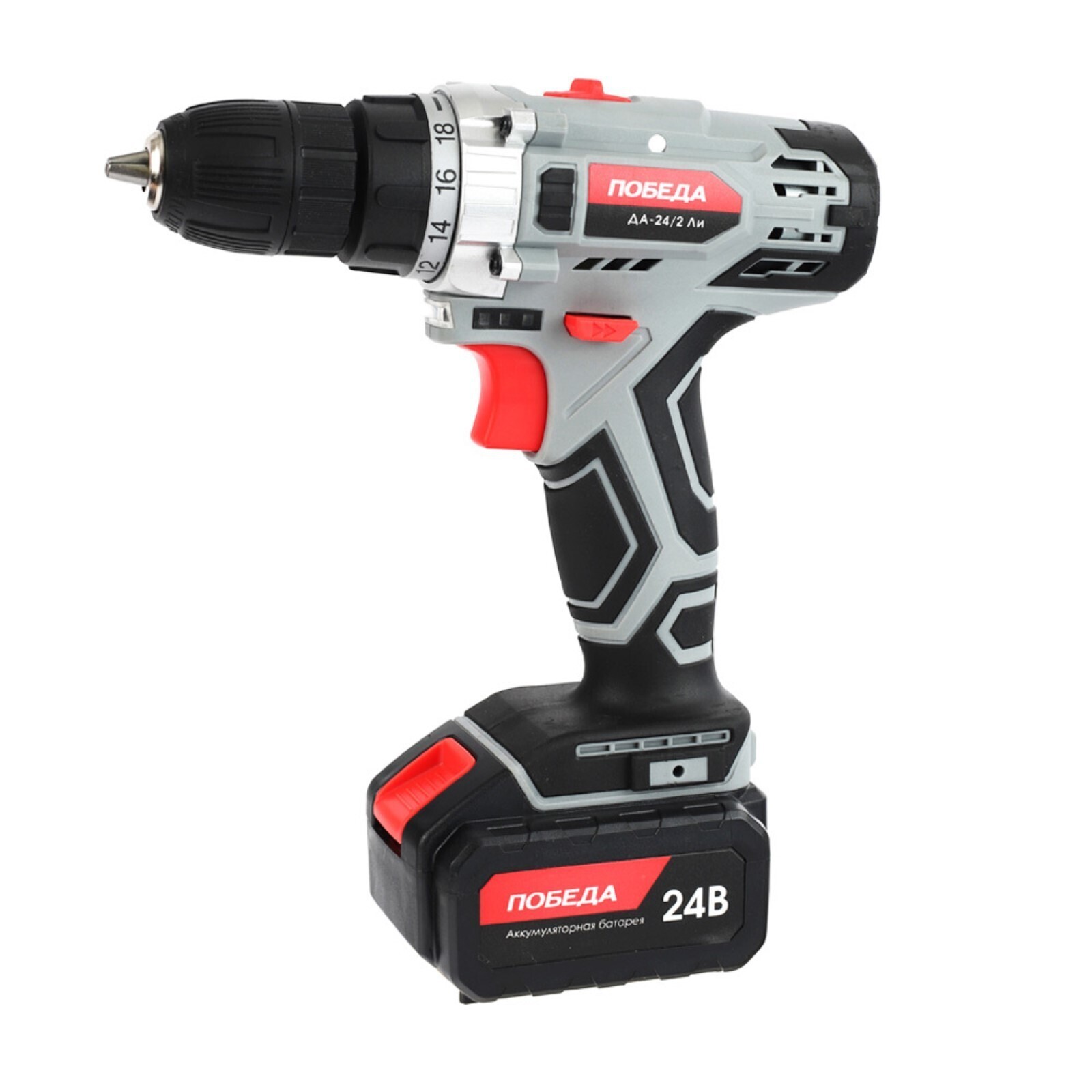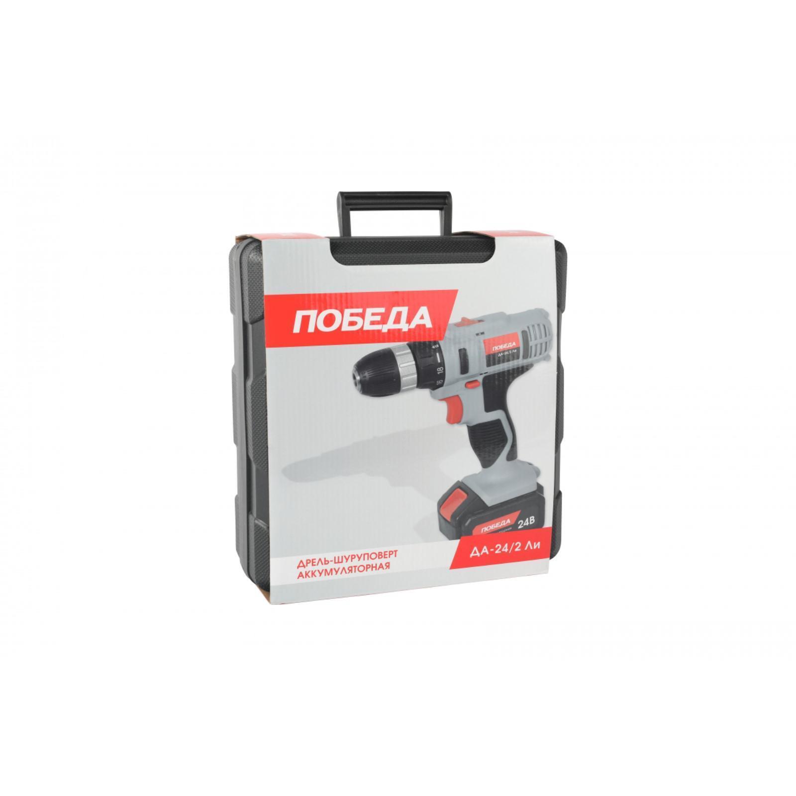Дрель-шуруповерт аккумуляторная ПОБЕДА ДА-24/2Ли, 24 В, 2.2 Ач, Li-Ion, 45 Нм, 1490 об/мин