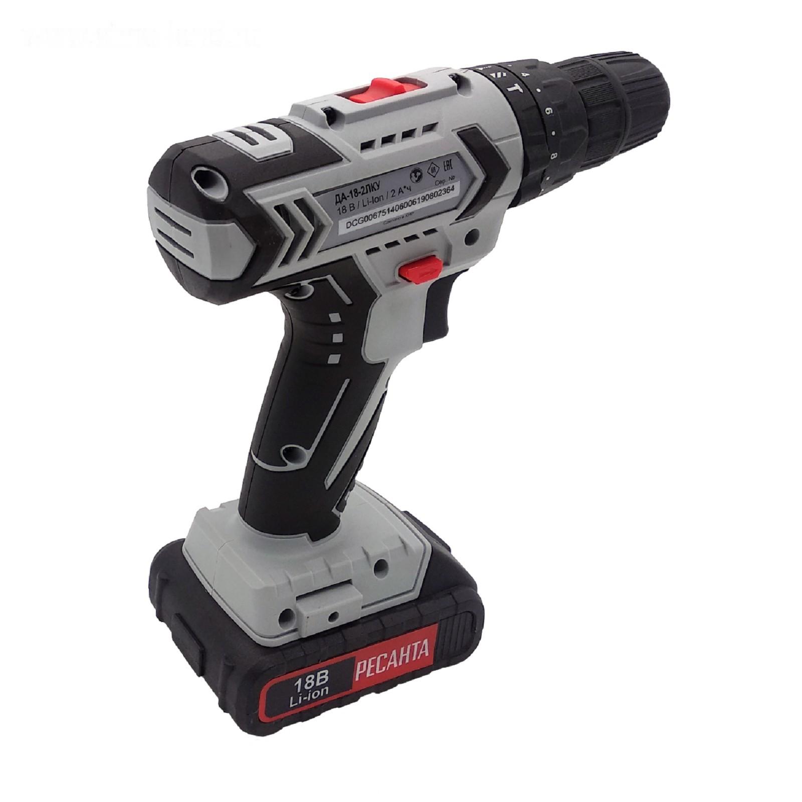Дрель-шуруповерт "Ресанта" ДА-18-2ЛК-У 75/14/6, аккумуляторная, 18 В, 21+1, 2 АКБ, кейс