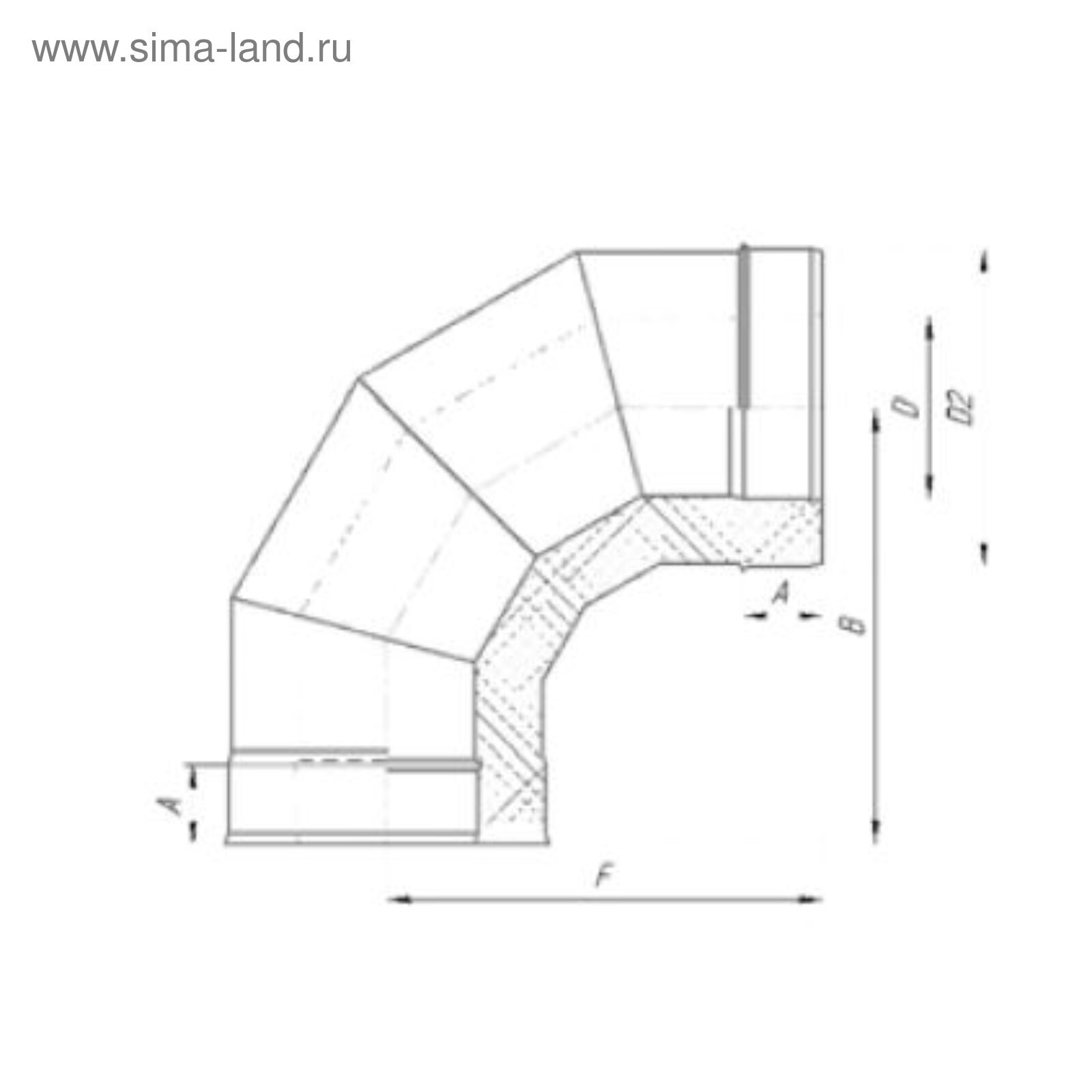 Сэндвич-Отвод 90°, d 150 × 210 мм, нерж/оцинк, 0.5 мм/0.5 мм