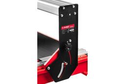 Дополнительный стол облегчает нарезку длинных заготовок. Крепится он без использования дополнительных инструментов – просто вешается на зацепы.