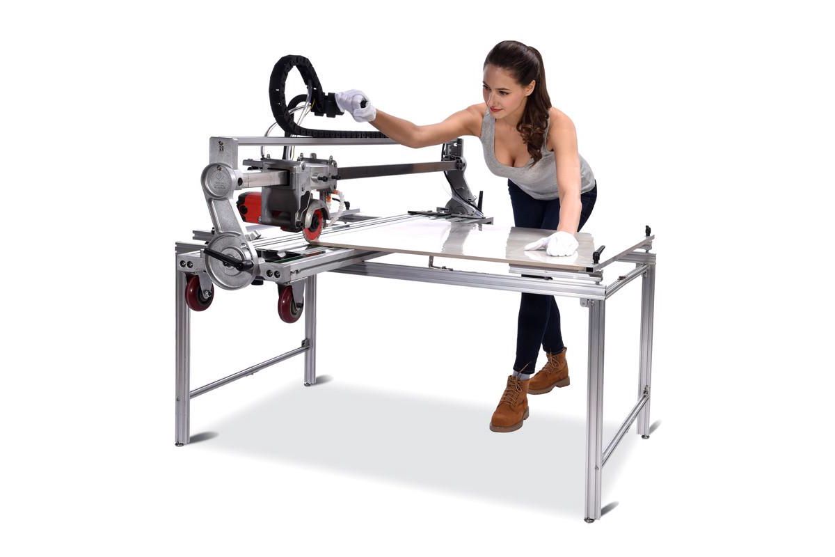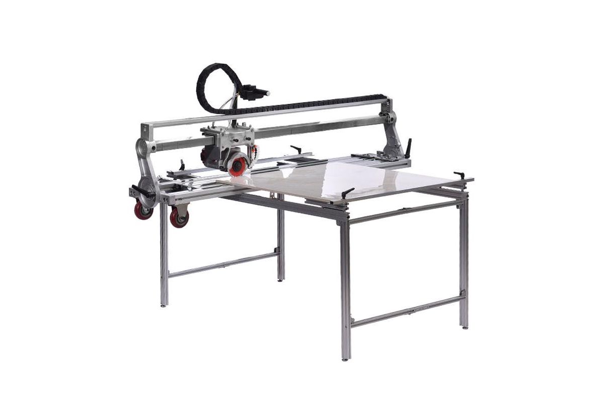 Станок для резки плитки мостового типа с рабочим столом и водяным охлаждением. Длина пропила 800 мм, мощность двигателя - 2300 W, 13000 об/минуту, отрезной диск 110-116 мм, лазерный указатель.