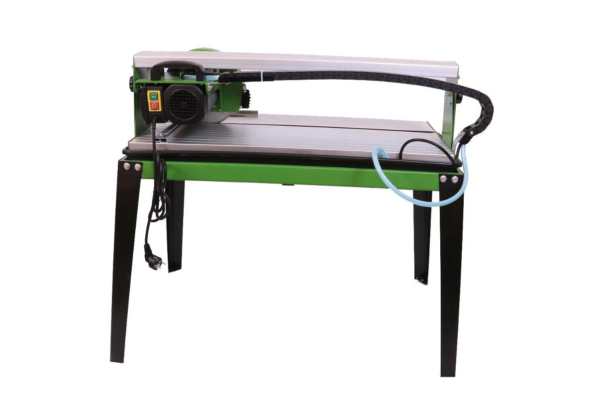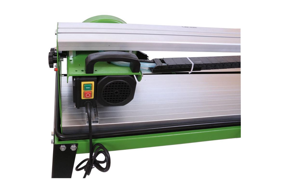 Электрический плиткорез со столом ЭПЛ-200/520СТ предназначен для резки с водяным охлаждением всех видов натуральной и искусственной керамической, облицовочной, напольной и тротуарной плитки алмазным кругом под прямым углом и углами до 45°. На кронштейне закреплён шланг, подающий насосом воду из поддона на отрезной круг и заготовку для охлаждения, во время работы. Резиновый шлангоукладчик обеспечивает дистанционирование шланга от рабочей зоны круга и перемещение его вместе с головкой режущей.