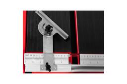 Параллельный упор помогает резать на заданную ширину и под нужным углом. На нём присутствует миллиметровая и градусная шкалы.