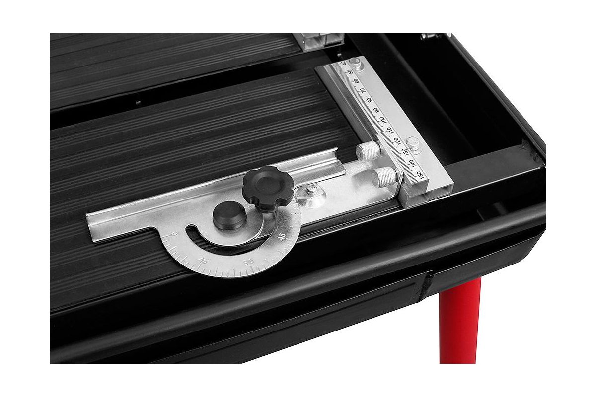 Наклонная направляющая рейка позволяет резать материал под углом до 45 градусов.