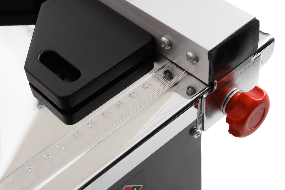 Рабочий стол изготовлен из высококачественной стали и защищен от коррозии специальным покрытием. Для большей точности реза он оснащен линейкой с миллиметровой шкалой. Для серийной резки оснащен параллельным упором.