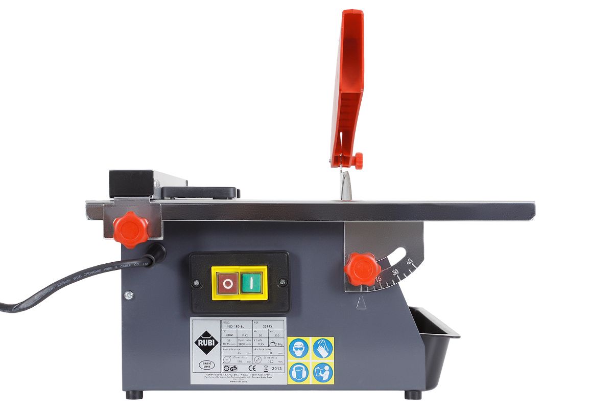 RUBI ND-180-BL – профессиональный портативный плиткорез для прямой и диагональной резки кафельной плитки, керамогранита и других материалов. Преимущества: глубина пропила до 35 мм; снятие фаски до 22 мм; надежный двигатель на 550 Вт с защитой от перегрева; водяное охлаждение круга погружением; наклоняемый рабочий стол; параллельный упор, алмазный диск и прочный пластиковый кейс в комплекте.