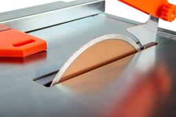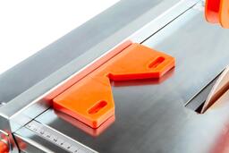 Входящий в комплект металлический параллельный упор и линейка на корпусе изделия облегчают подачу плитки в область реза;