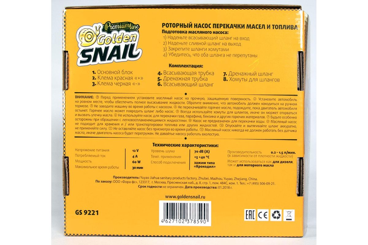 Насос для перекачки GOLDEN SNAIL GS 9221 масла 12 v.