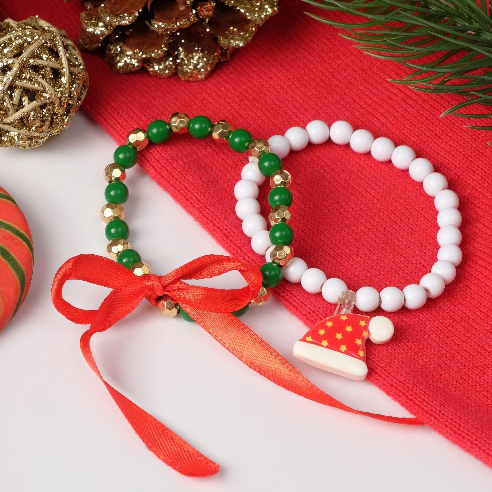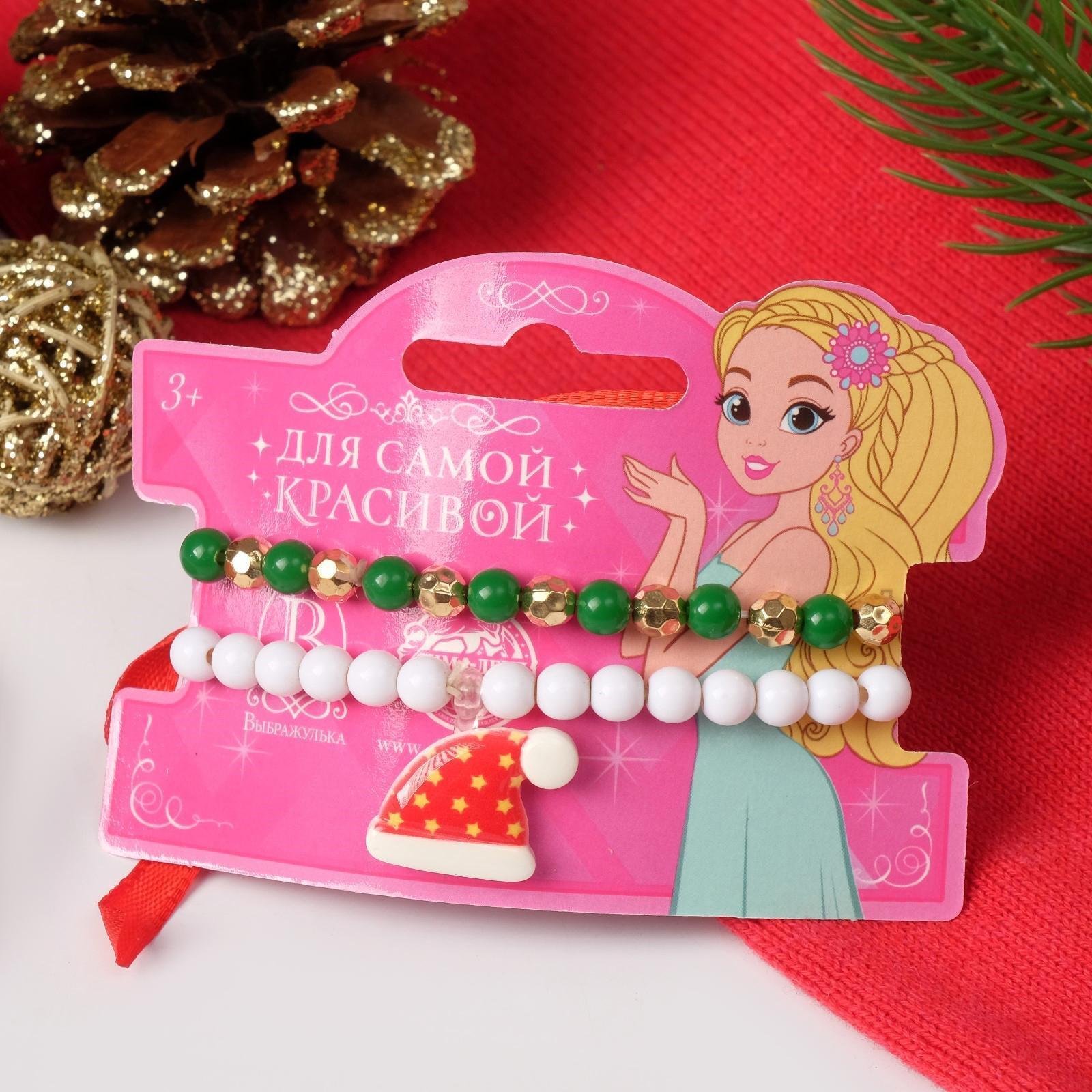 Набор браслетов новогодний "Выбражулька" шапочка и бантик, цветной