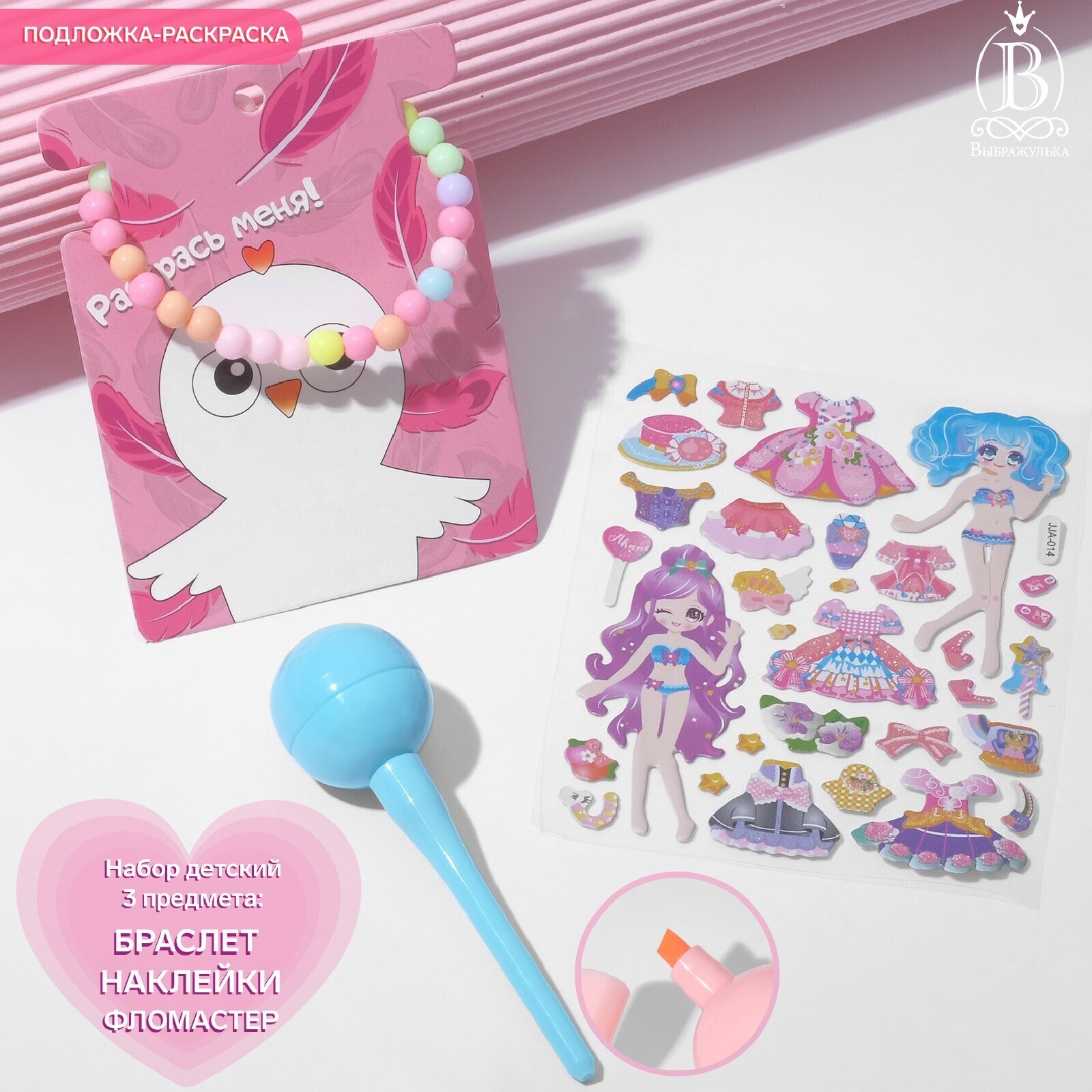 Набор детский "Выбражулька" 3 предмета: браслет, наклейки, фломастер, цыплёнок, цветной