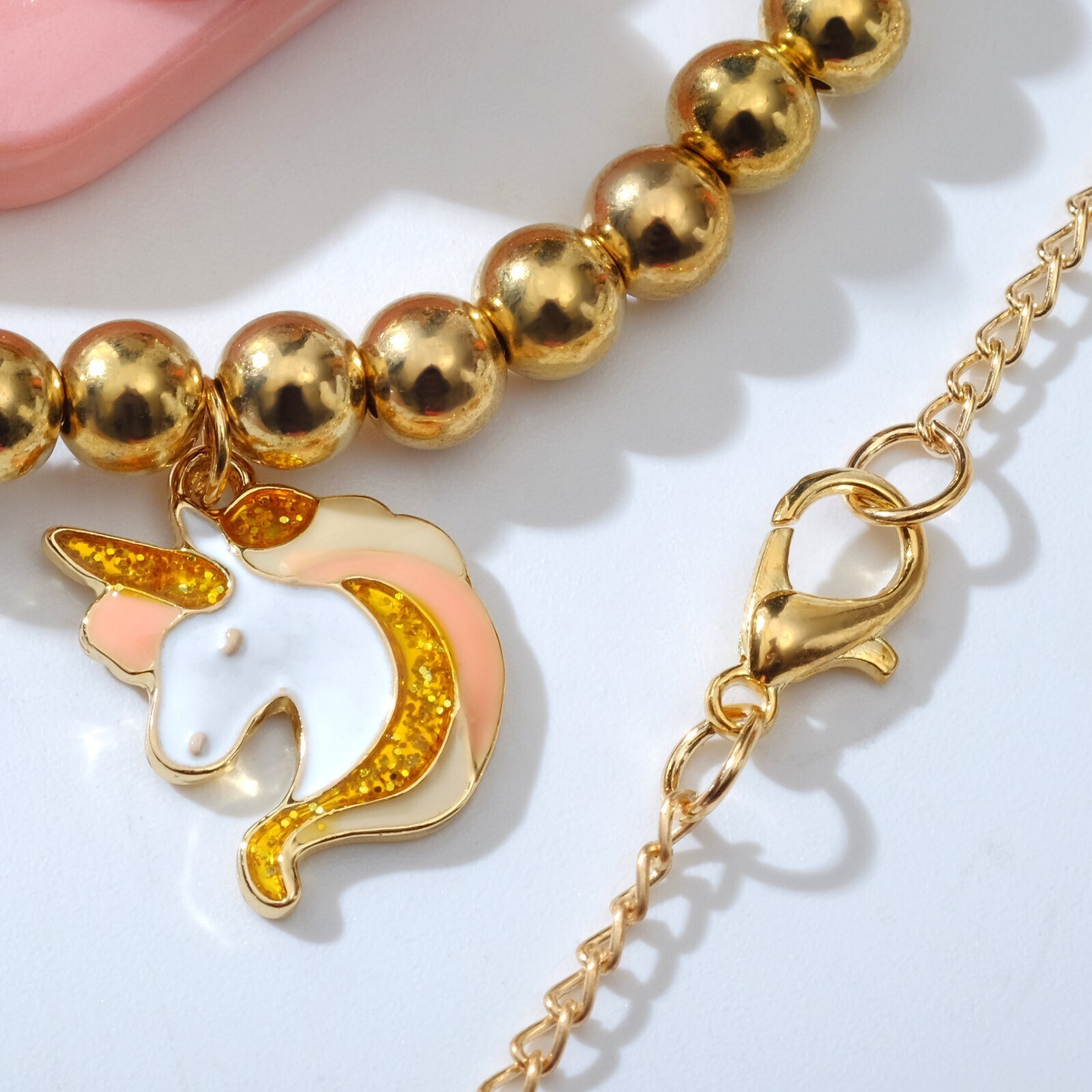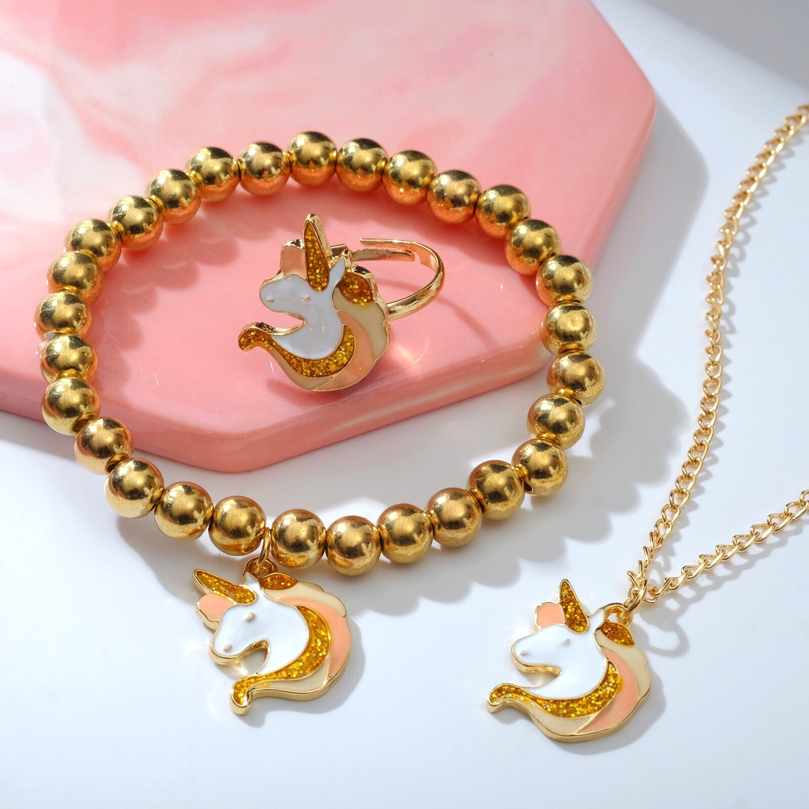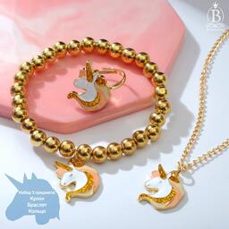 Набор детский 3 предмета: кулон, браслет, кольцо "Выбражулька" единороги, цветной в золоте