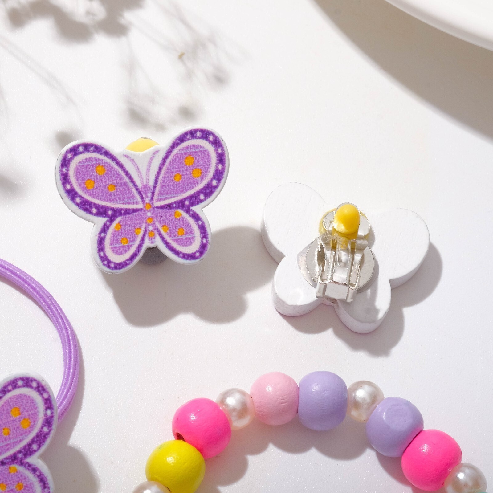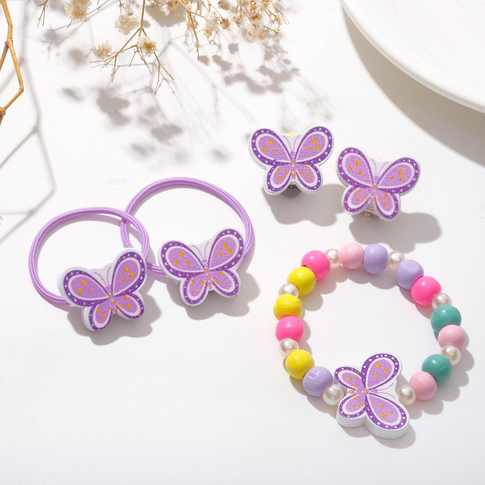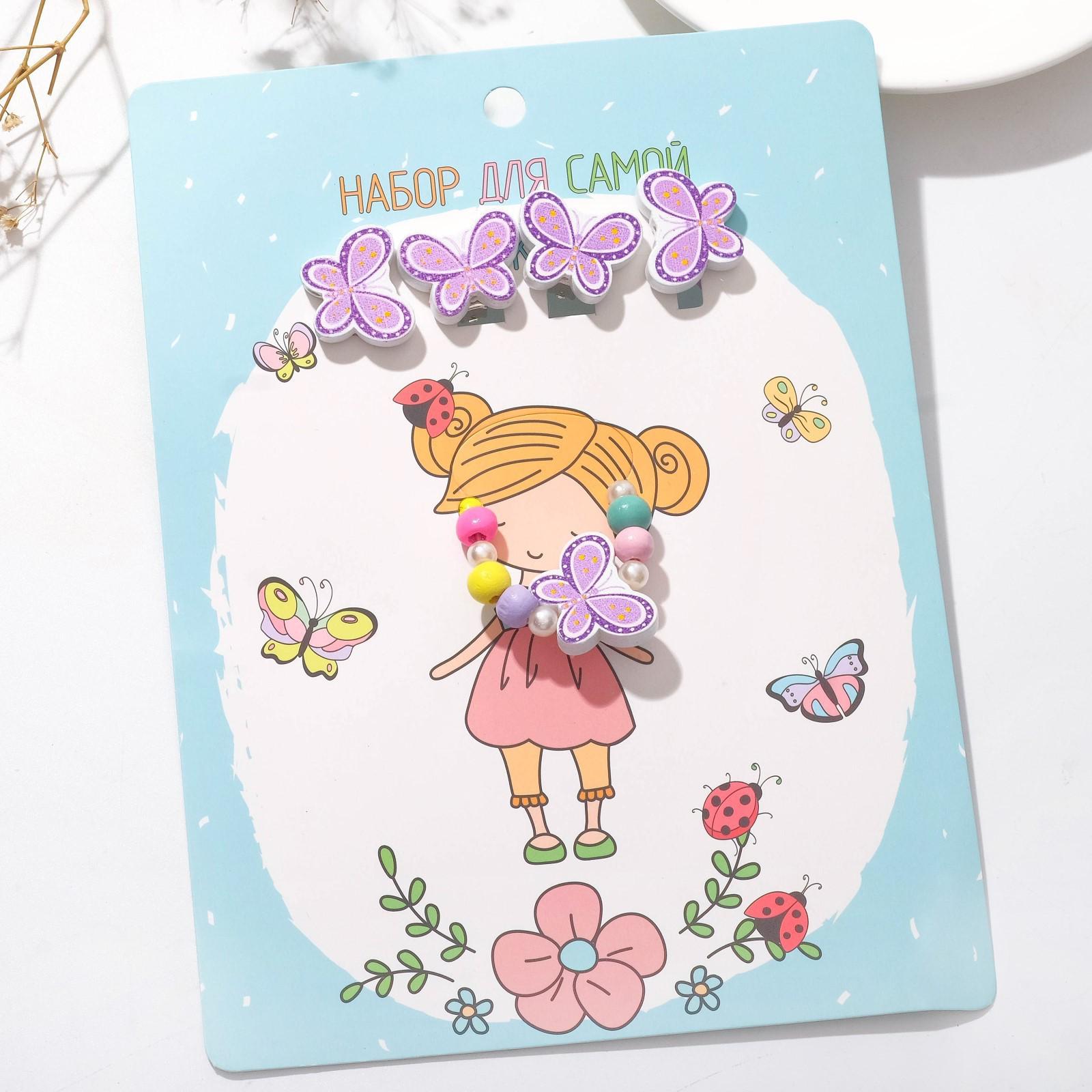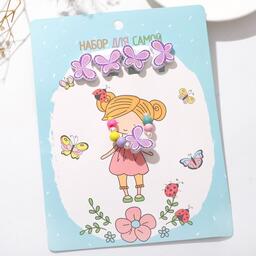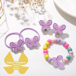 Набор детский "Выбражулька" 4 предмета: 2 резинки, клипсы, браслет, бабочки, цветной