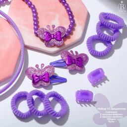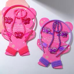 Набор детский "Выбражулька" 12 пред-тов: 4 заколки, 6 резинок,ободок,бусы,бабочки, цвет МИКС 70484