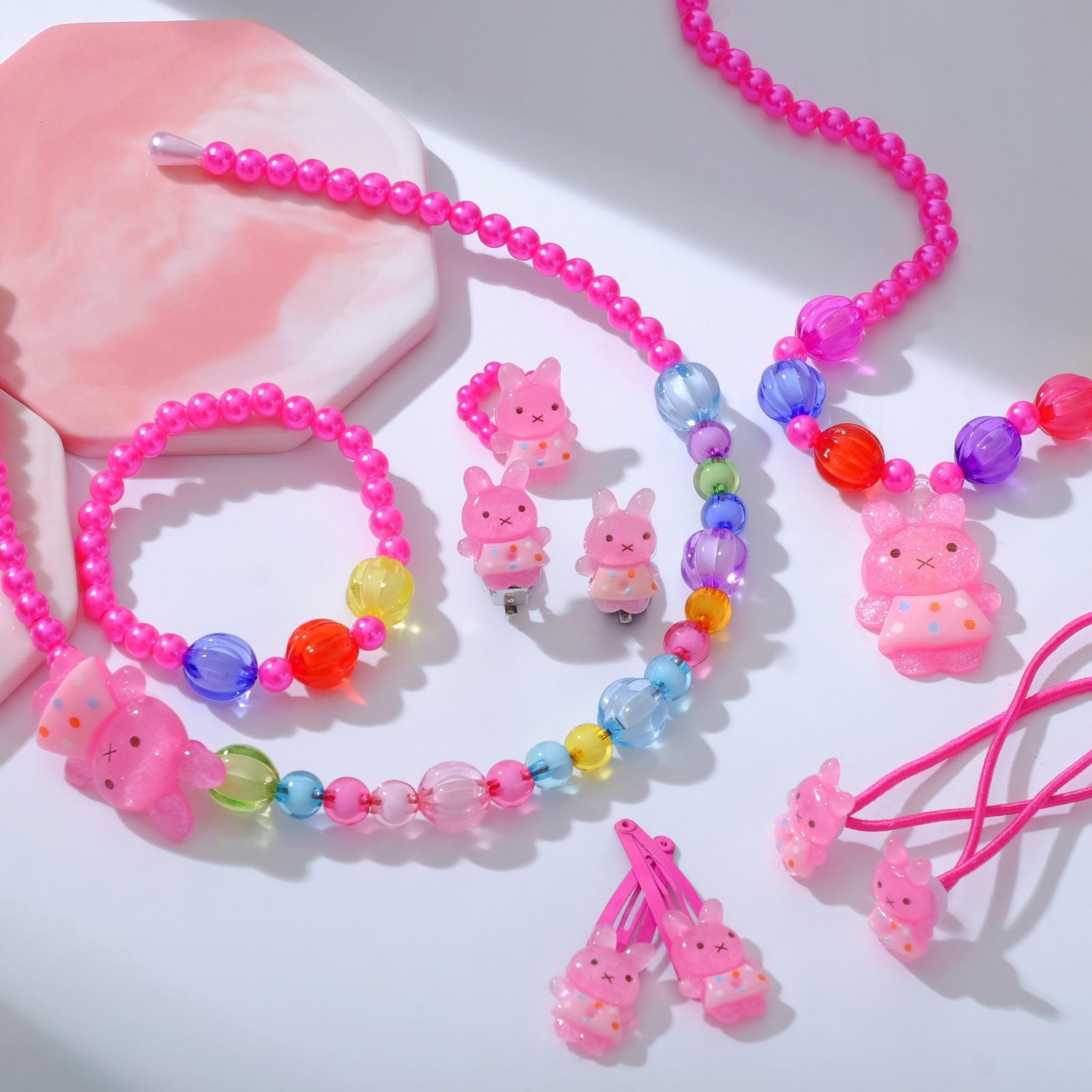Комплект детский "Выбражулька" 9 предметов: ободок, 2 резинки, 2 заколки, клипсы, кулон, браслет, кольцо, зайчики, цвет МИКС