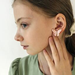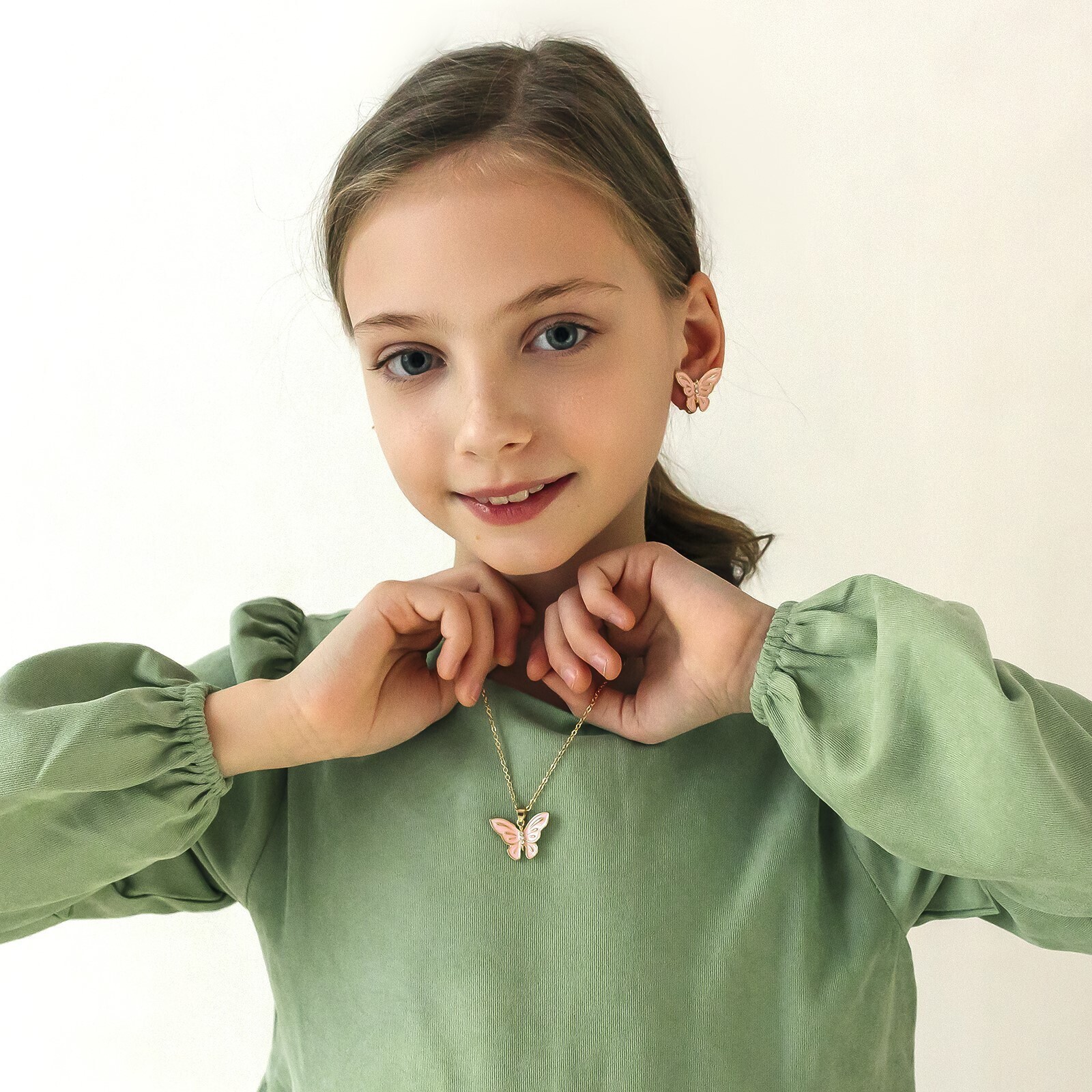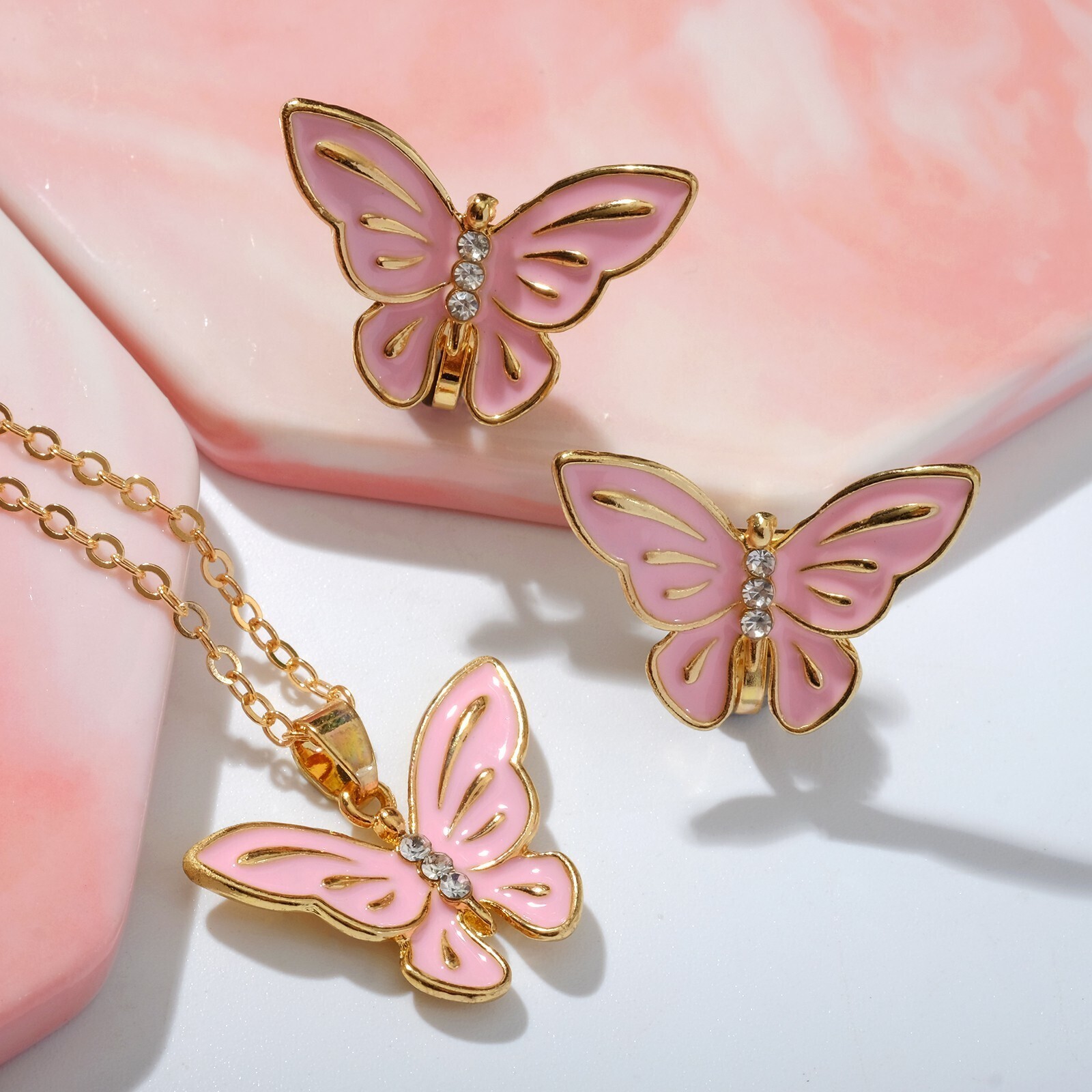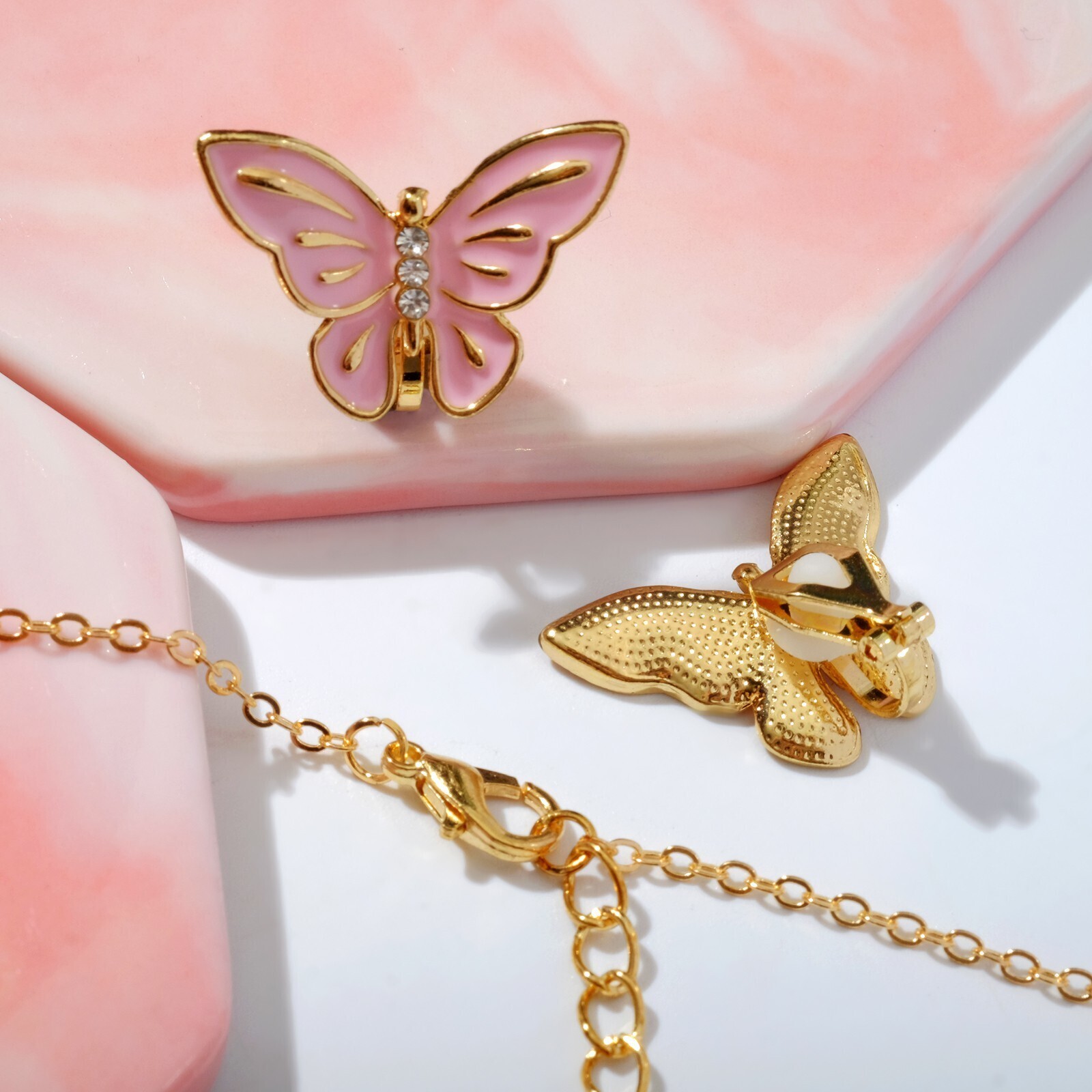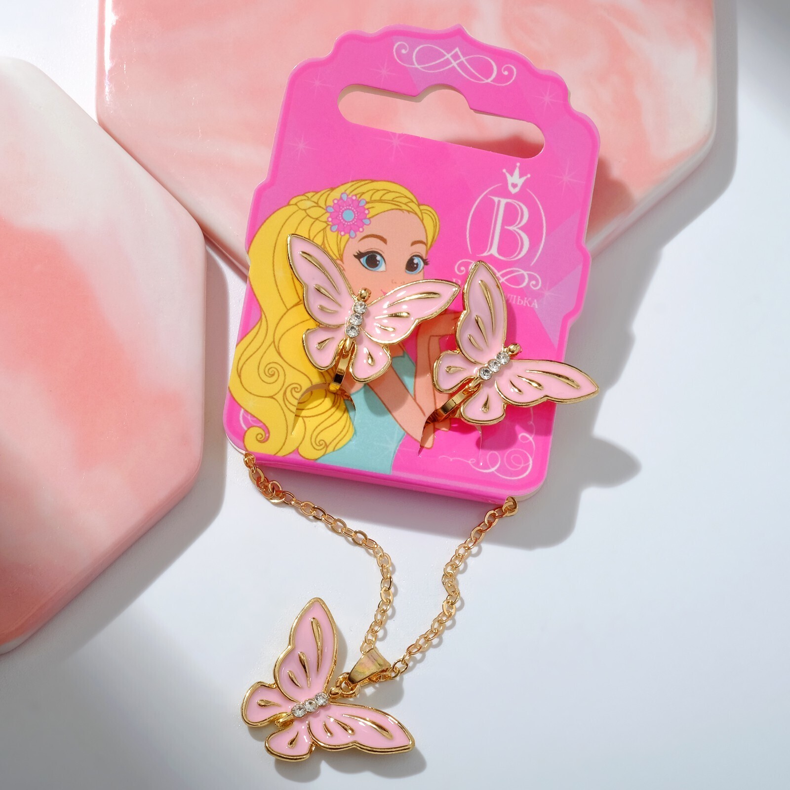 Набор "Выбражулька" 2 предмета: клипсы, кулон, бабочки весенние, цвет розовый в золоте