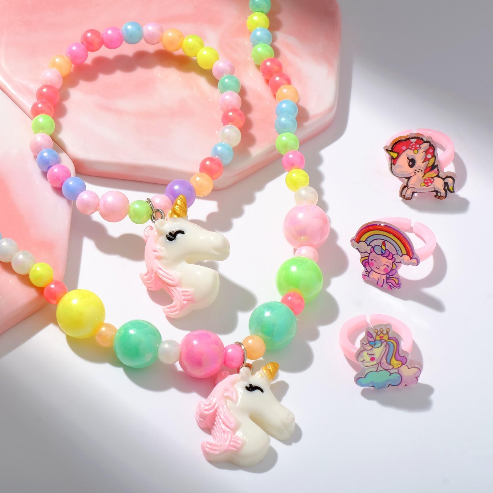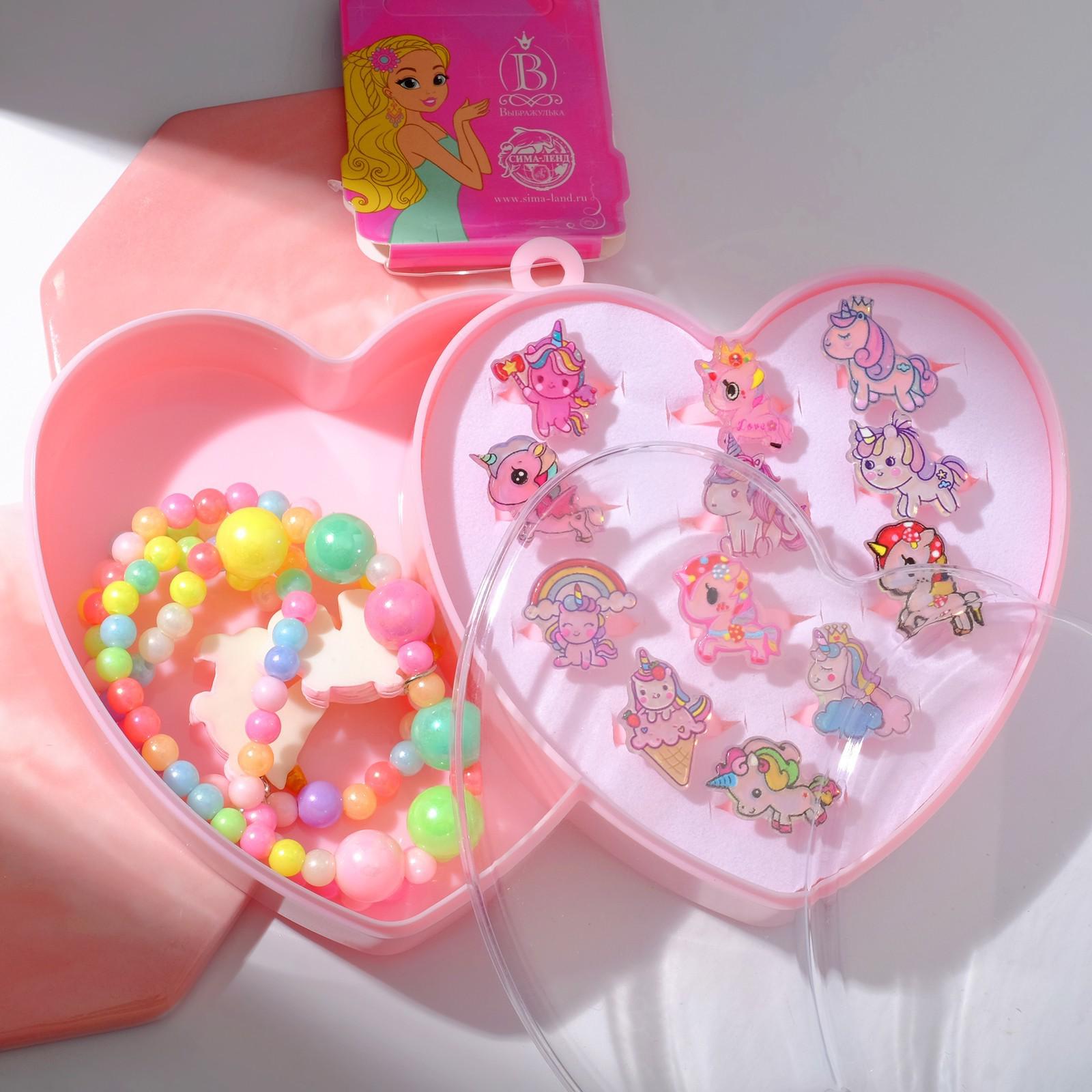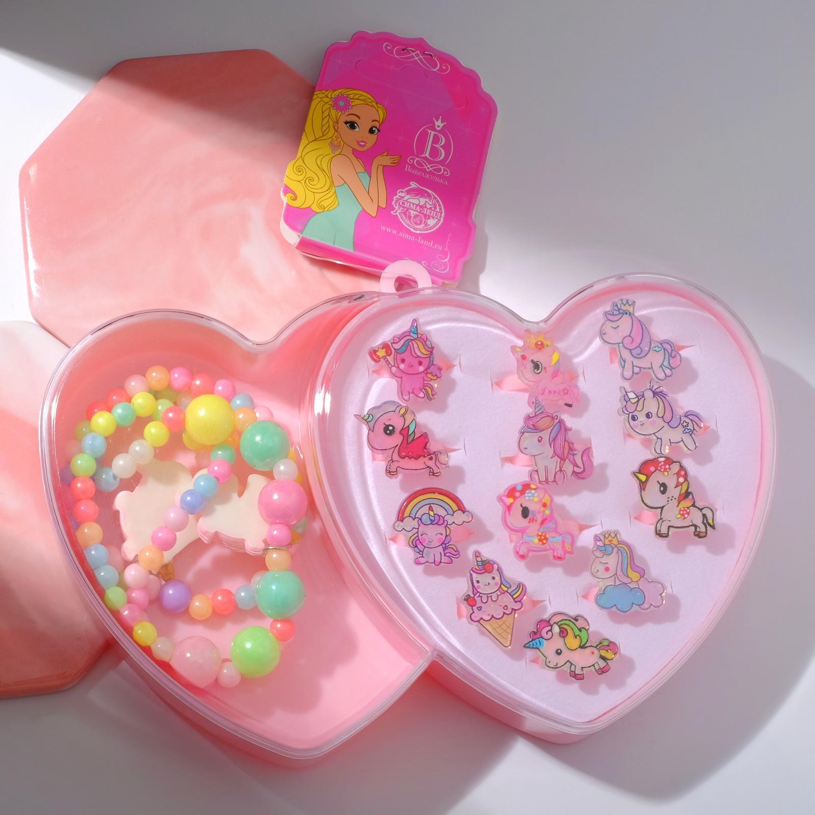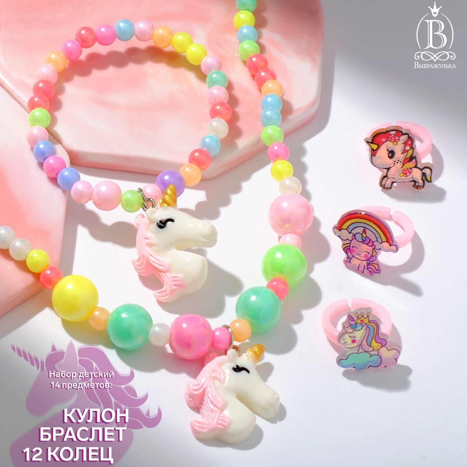 Набор детский "Выбражулька" 14 предметов: 12 колец, кулон, браслет, единороги, цветной