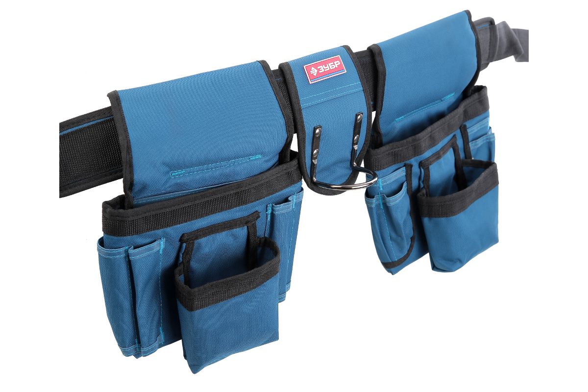 Сумка поясная монтажника ЗУБР 38640, 18 карманов