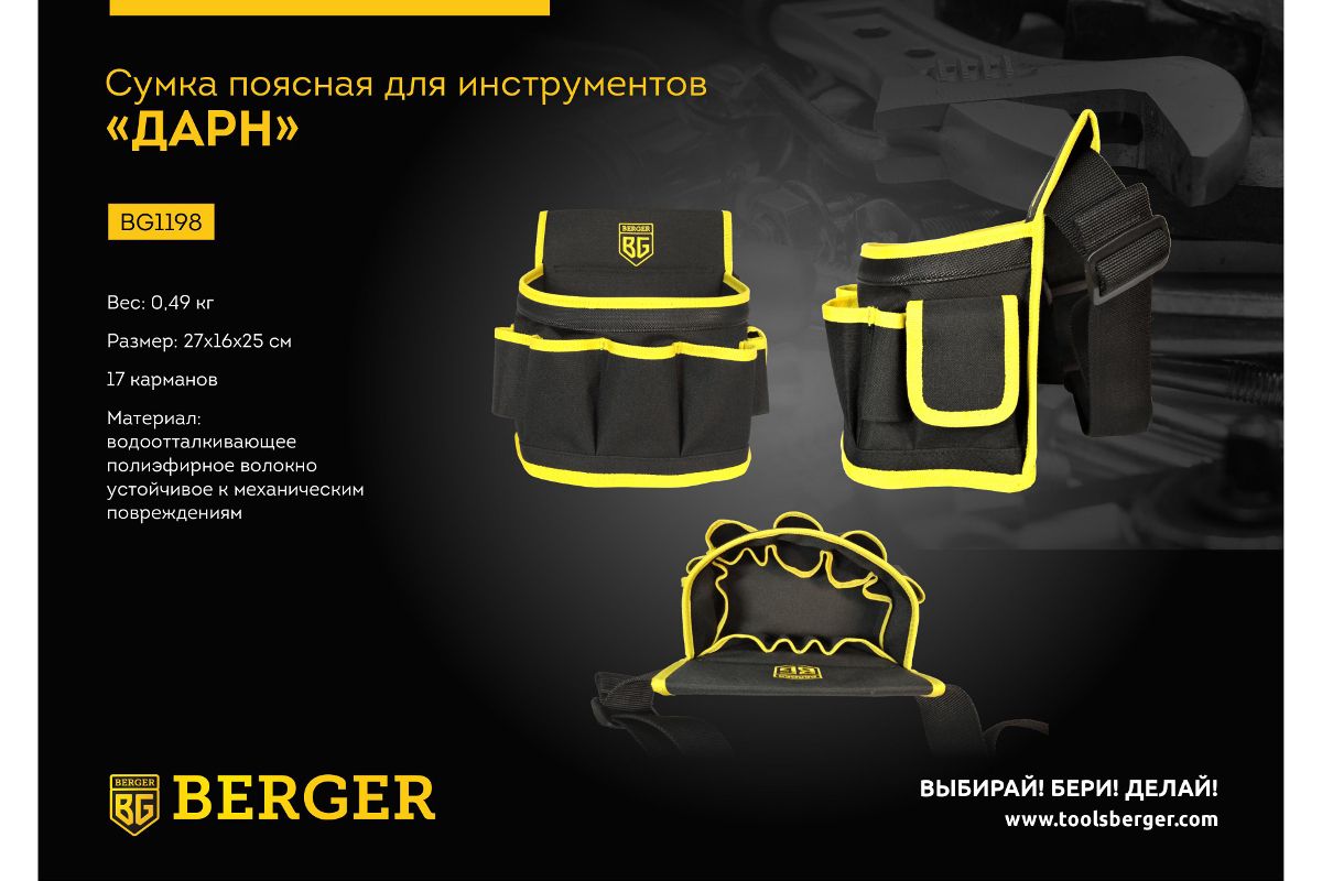 Сумка поясная для инструментов BERGER ДАРН BG1198 на пояс 17 карманов